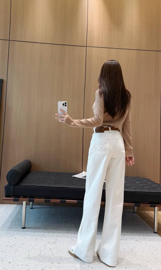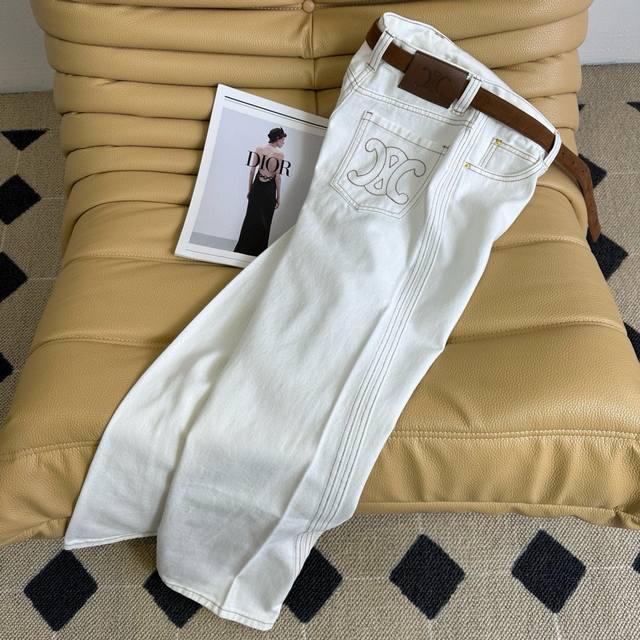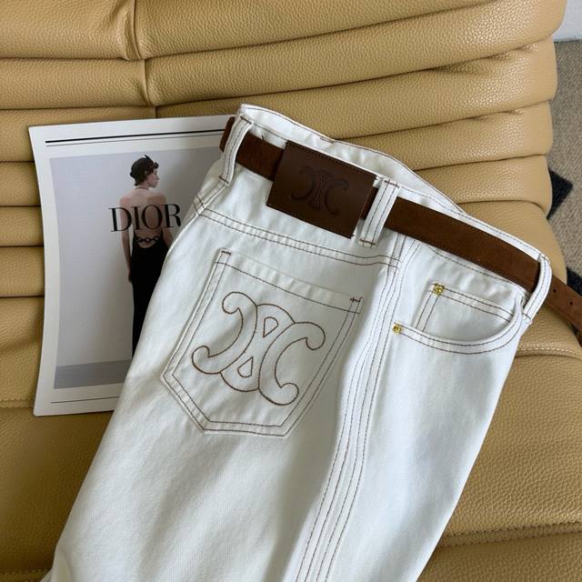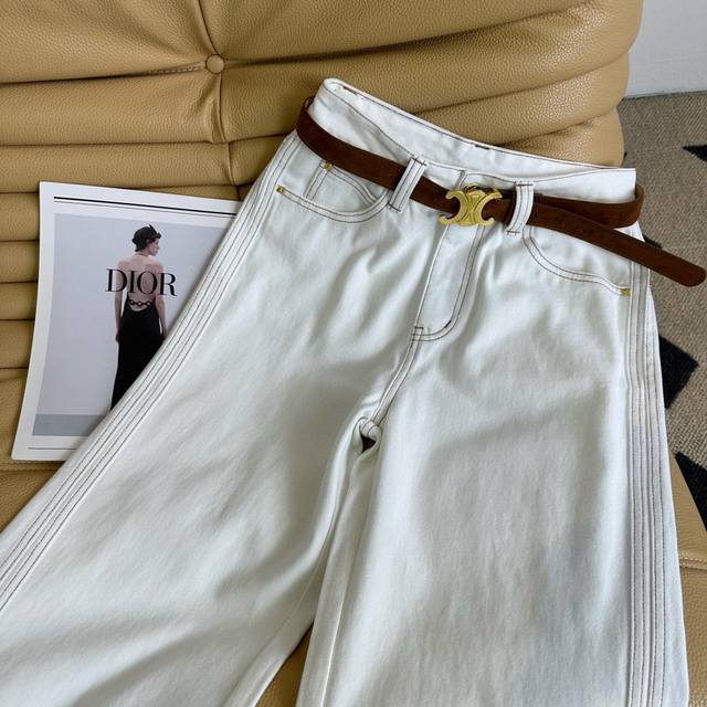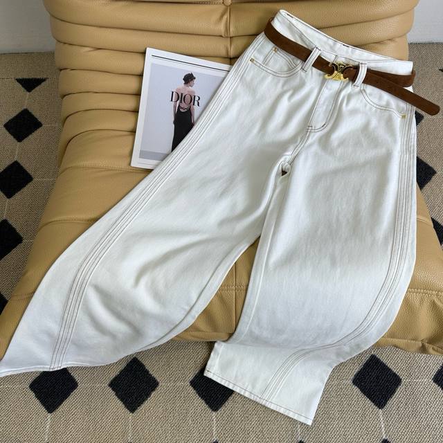 New Arrival! Celine 25Ss Autumn/Winter Retro Design Denim Pants with Back Pocket Embroidered Stitching. High-waisted, slimming, loose wide-leg cut