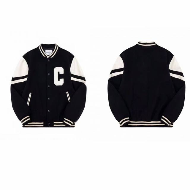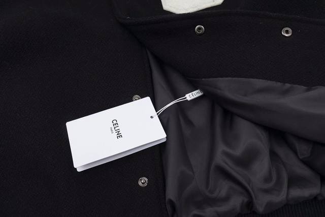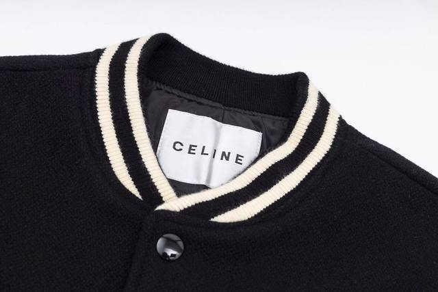 New Arrival: Celine's Exclusive High-Quality Classic Baseball Jacket - Loose-fitting, unisex design and cut. Custom-dyed "grass-colored" wool fabric with 90% wool content, excellent feel, and extremely high cost