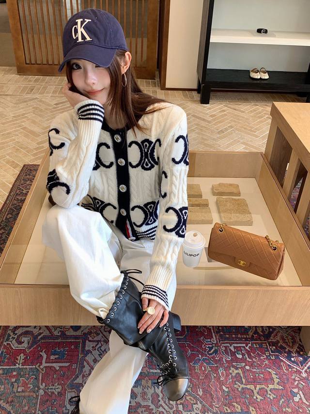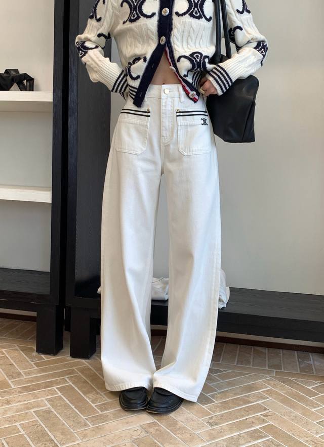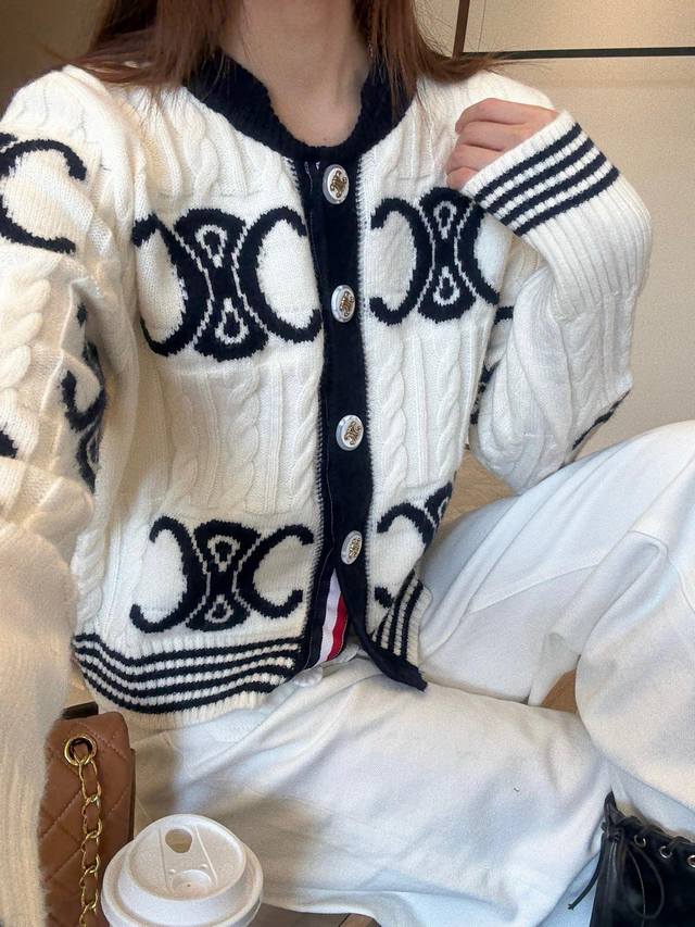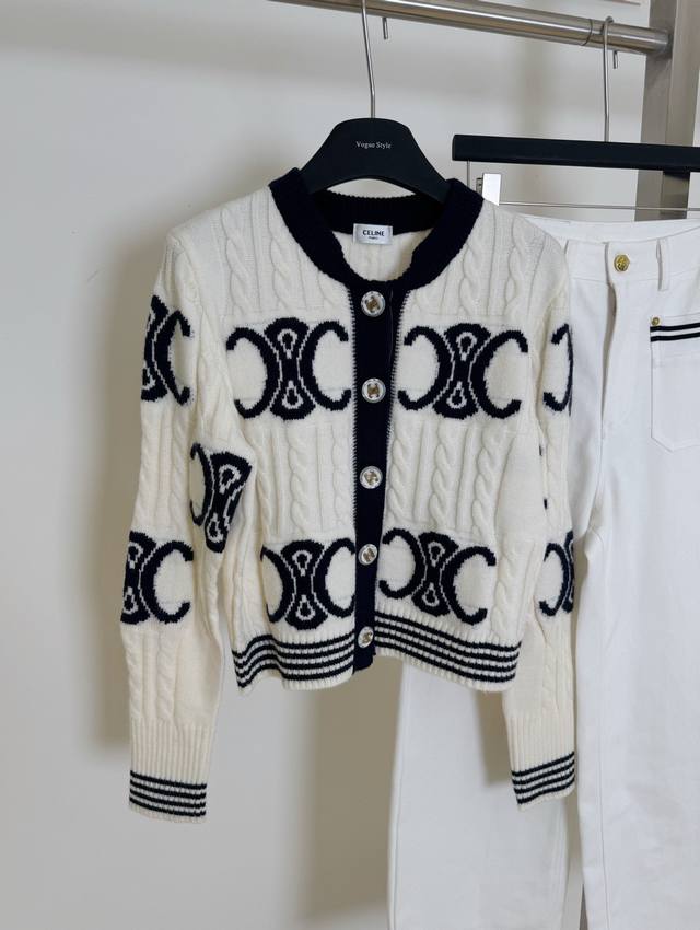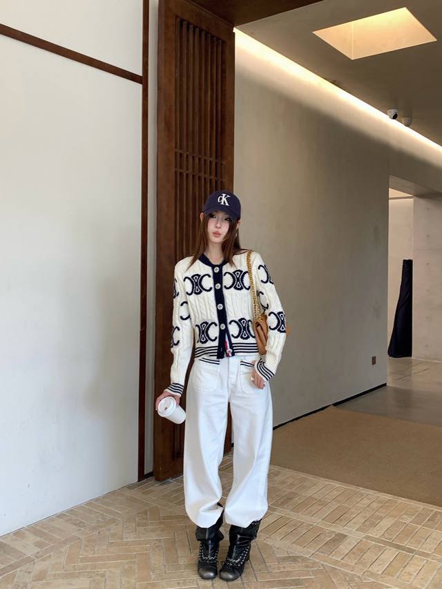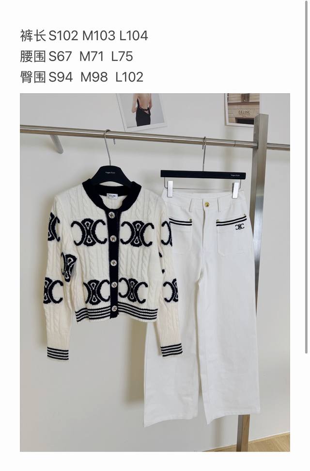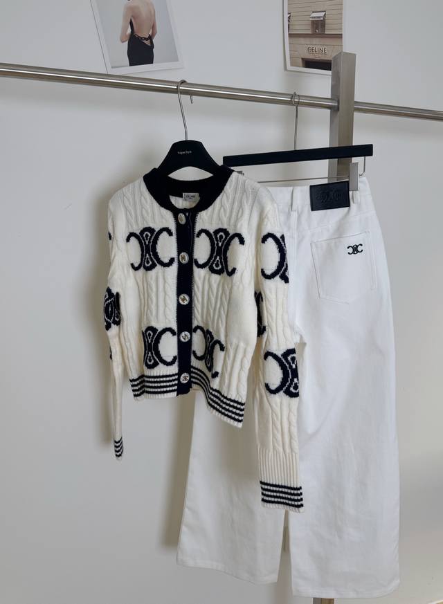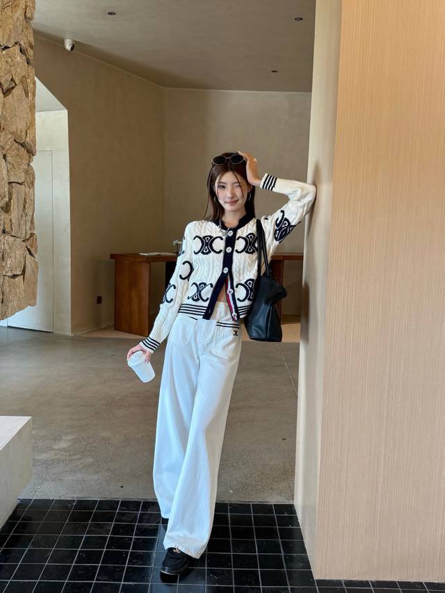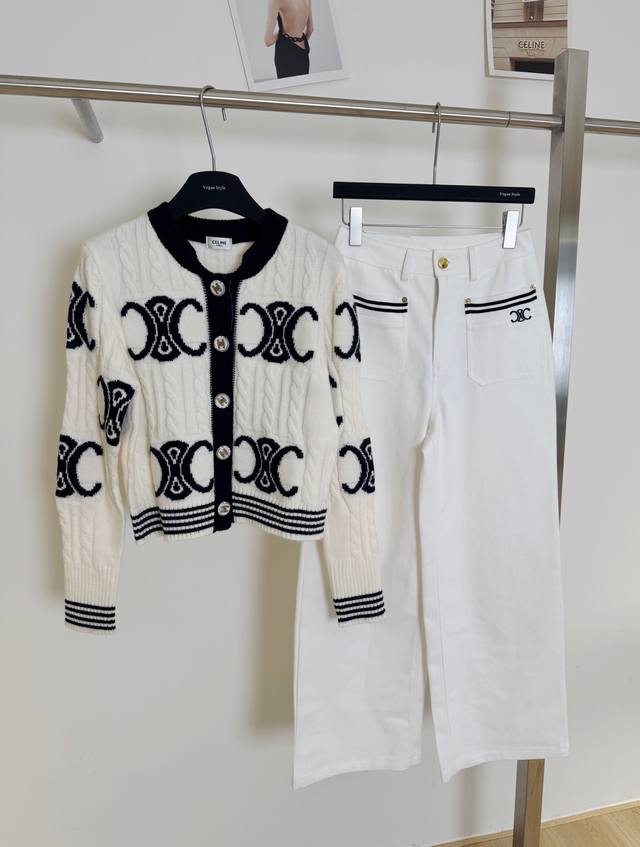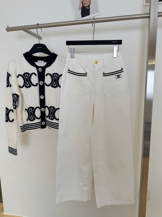 / New pants Celi* Celine Arc de Triomphe custom button knitted sweater straight s