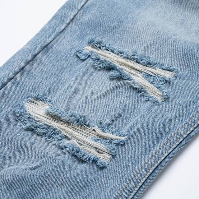 Cewesley washed, knife-cut and damaged loose straight American jeans Celine jeans retro and distressed Cleanfit jeans