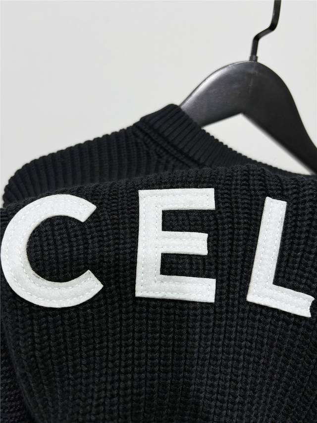 Sweater, unisex style! Celine's classic letter patch crewneck knit sweater. Cel