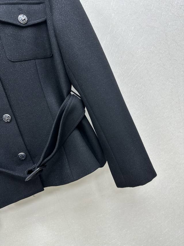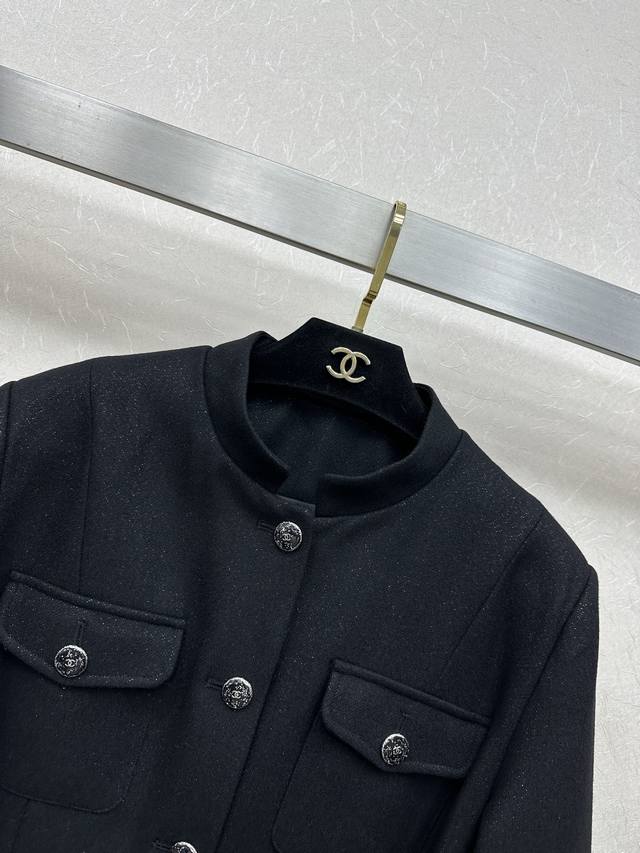 25Ss Chane* New Chanel single-breasted stand-up collar jacket, custom-made with metal buttons, made of high-end wool fabric, with a belt at the waist and double pockets. The shape is very flattering. The exquisite and simple top exudes the elegant and ladylike temperament. Sml.