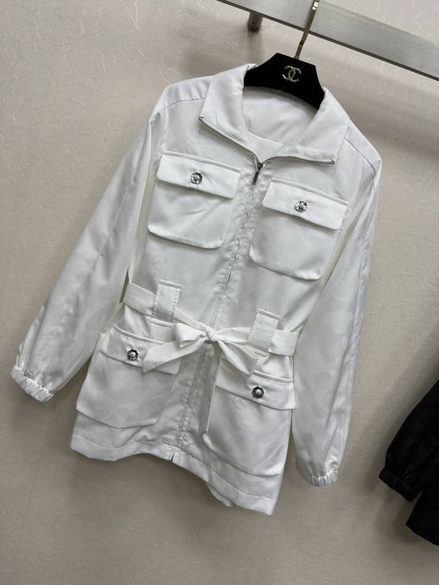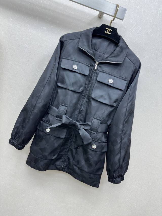 25Ss Chane *New early fall style, mid-length coat with lapel, dropped shoulders, and a loose fit. Four pockets and a waist belt create a stylish and fashionable American sporty style. The coat is stylish and fashionable. The workmanship and quality are reflected in the details. Two colors. Sml.