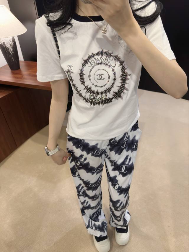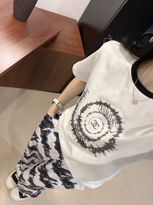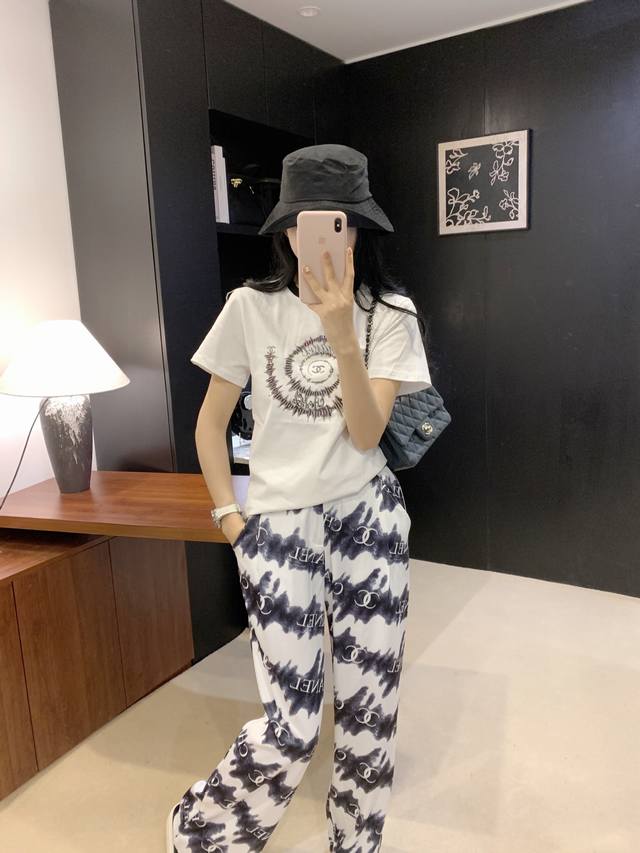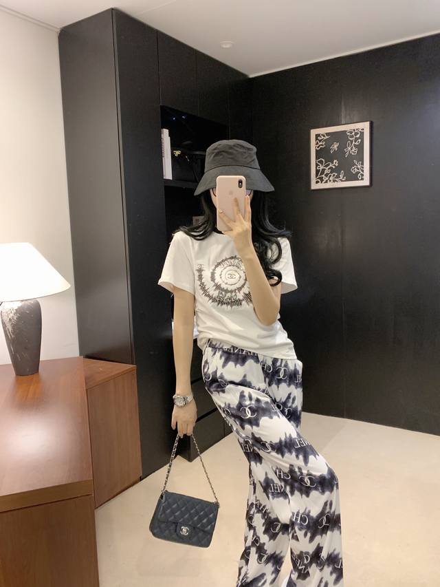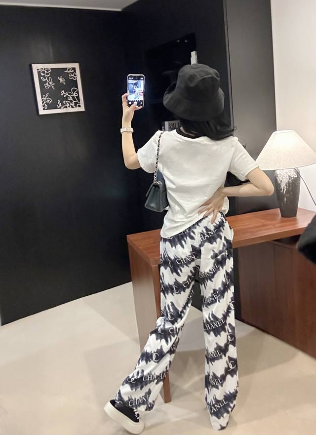 25Ss early spring new Chane* monogram wide-leg pants ~ exclusive new arrival, customized exclusive fabrics, models' upper bodies are all real shots of large goods, Sm, pink and black pants, pants
