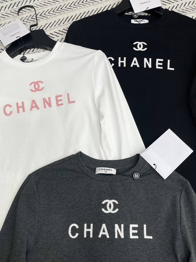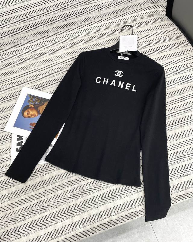 Chanel simple logo letter pattern long sleeve cotton T-shirt!