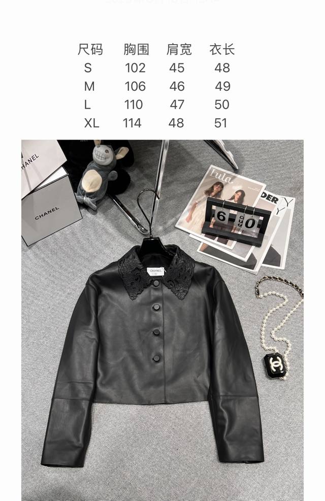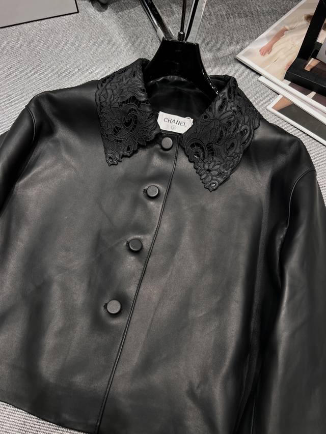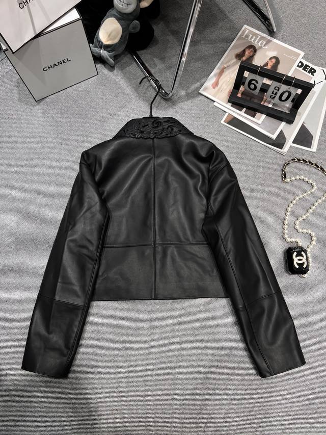 Chane* 2025 early autumn new leather jacket, made of high-quality imported sheepskin, with a burnt-flower collar, super exquisite, smooth version, and super elegant upper body Smlxl