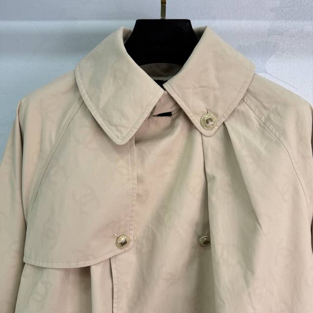 Chane* 2025 Early Fall new elegant and intellectual trench coat. Original design with a double C pattern that appears visible when exposed to water. Stylish, creative, and unique design. Comfortable to the touch and excellent texture. Pair with a shirt, camisole, or camisole for a variety of looks! 1 color, 3 sizes. Sml T226B.