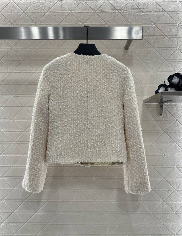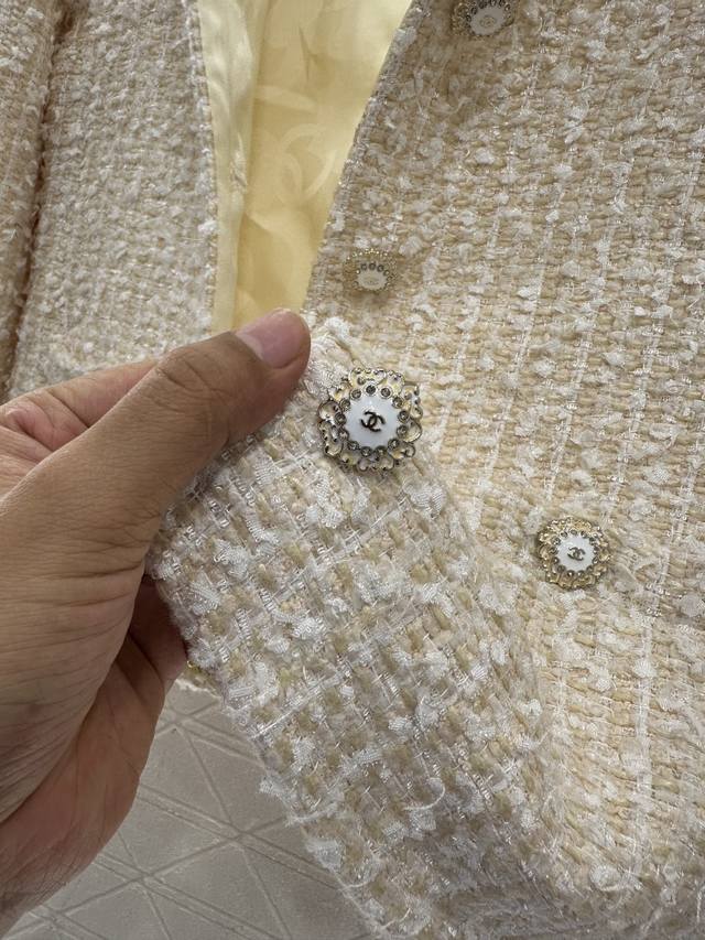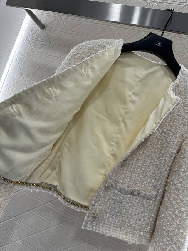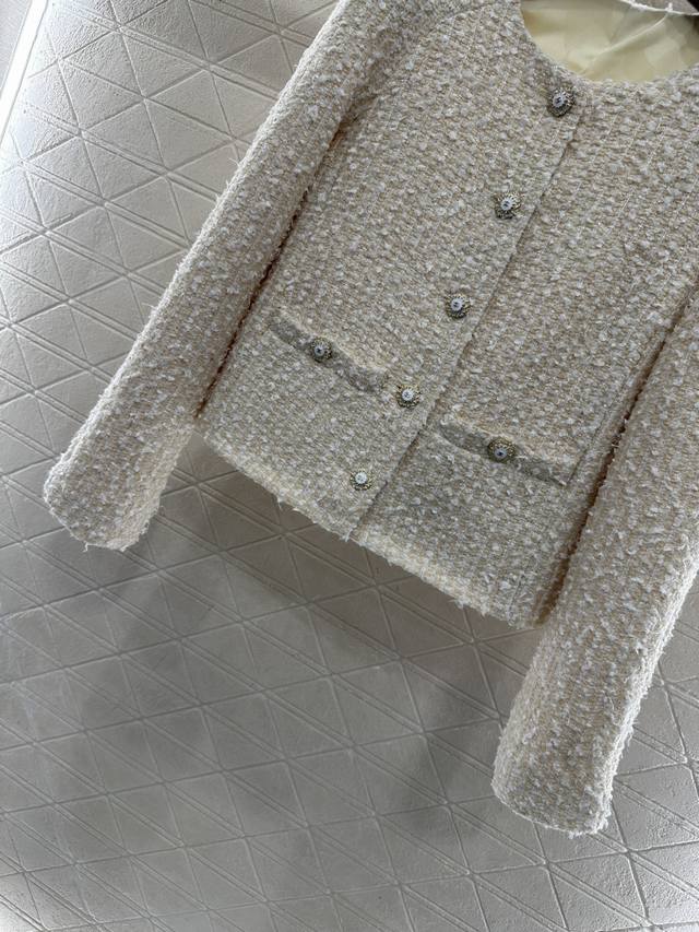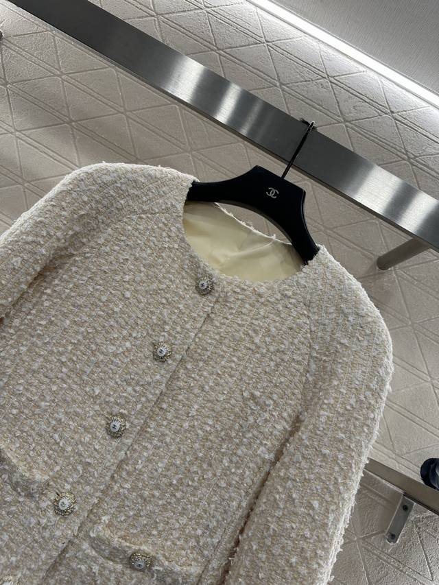Chane* 2025 New Arrival DDD Coarse Wool Crew Neck Dress Jacket DDD Custom Yb Imported coarse wool fabric, with a distinct texture and visible wool, superior quality. The coarse plaid wool fabric creates a classic elegant style. Shoulder pads flatter the head and shoulder proportions. The front features a single-breasted heavy-duty embossed round button. The beige woven plaid pattern is lively yet elegant. Exquisite symmetrical pockets add depth and highlight the brand's taste. It exudes sophistication and is a top choice for fashionistas. The lining hem features the iconic Chanel chain. Custom fabrics and accessories, please look for the high-quality version 36 38 40 DDD
