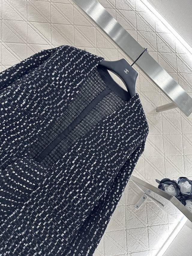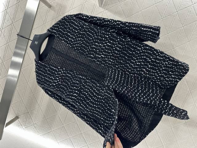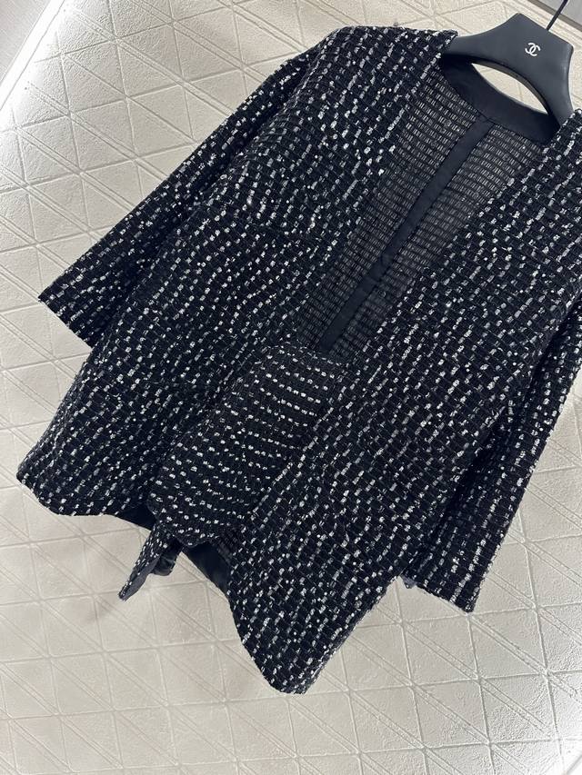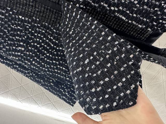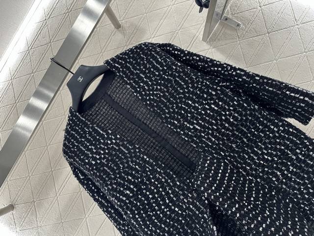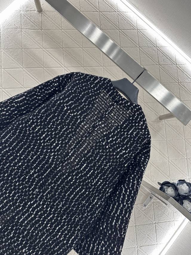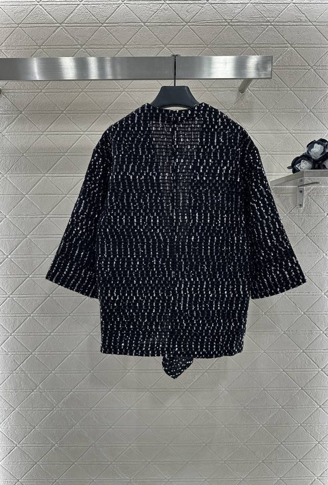 Chane* 2025 New Arrivals: Sequined Check Cardigan. Custom Yb cotton and wool mat
