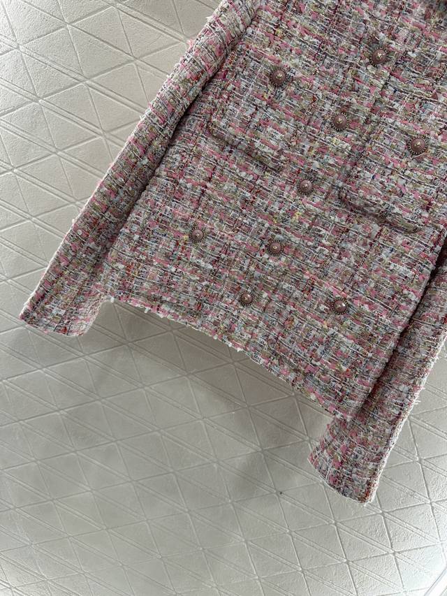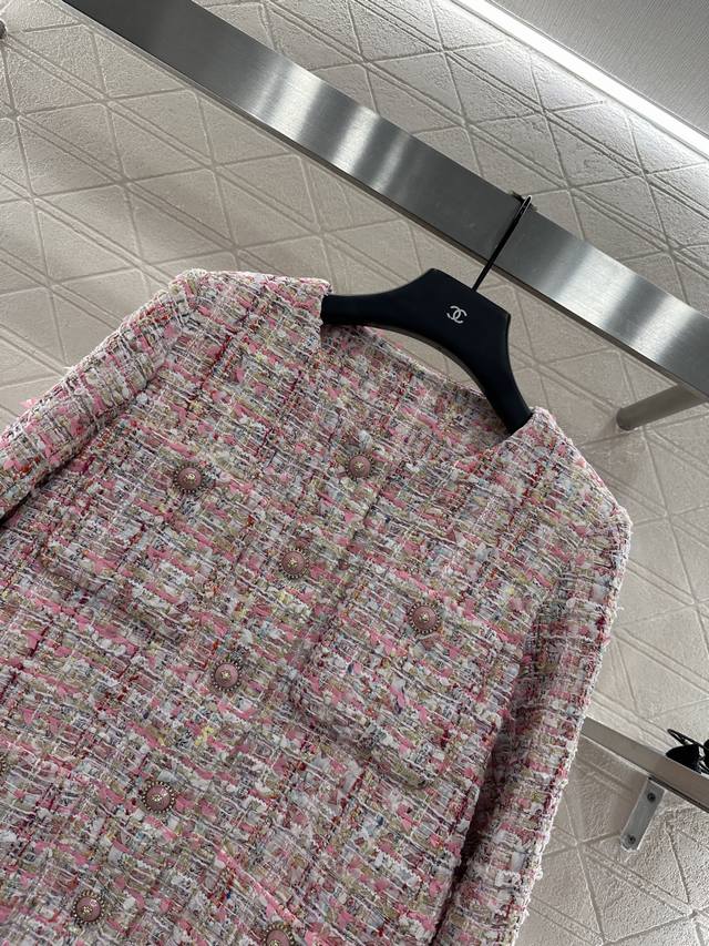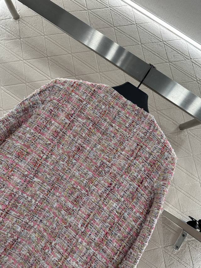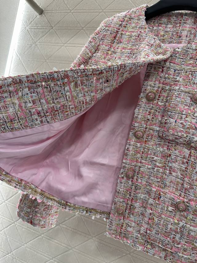 Custom Yb imported slub wool tweed material with a distinct texture visible to the naked eye, high-quality texture, coarse check tweed fabric creates a model of ladylike style. Single row of heavy-engraved round buttons on the front. Exquisite pink multi-color woven checkered texture. Lively and elegant. Exquisite multi-pocket design with rich layers to highlight the brand's taste. Top-notch style, fashionable and sophisticated. Top-of-the-line version with jacquard silk lining. Customized fabrics and accessories. Look for the high version 36, 38, 40.