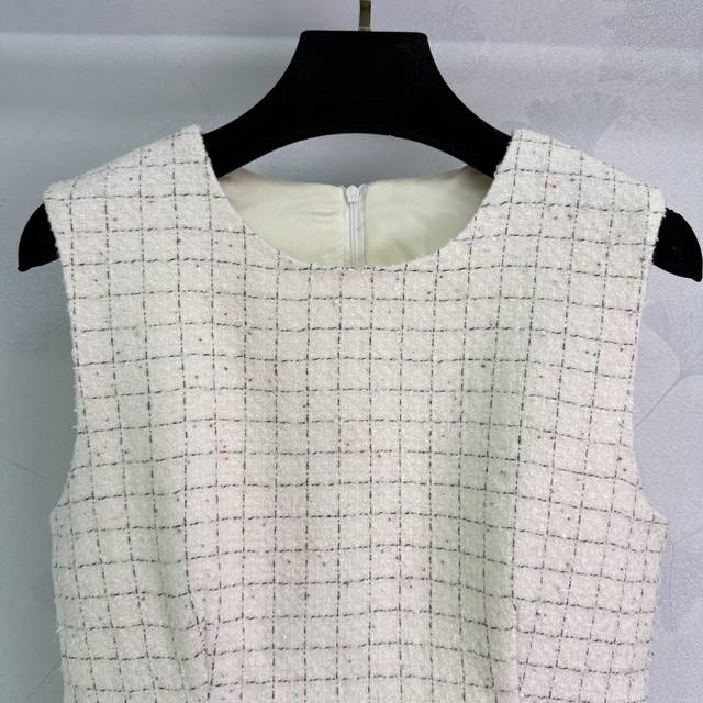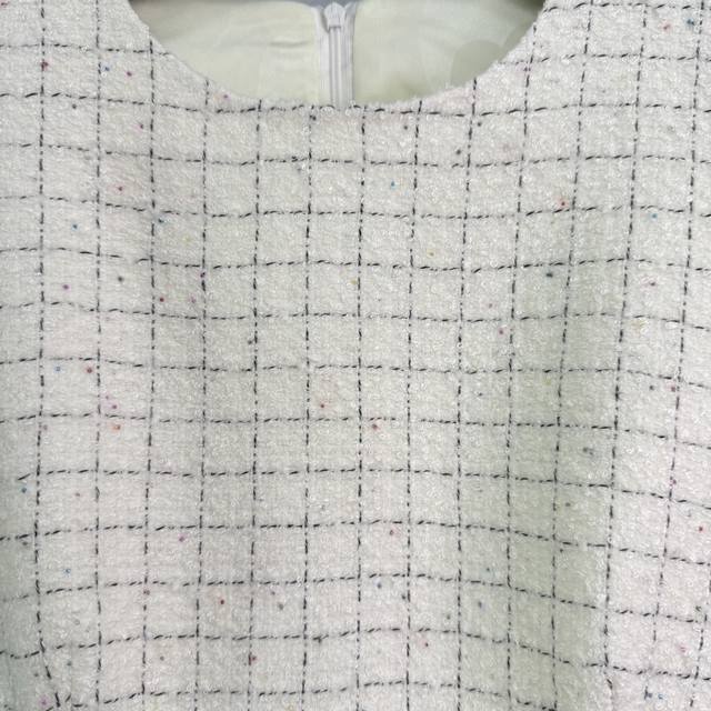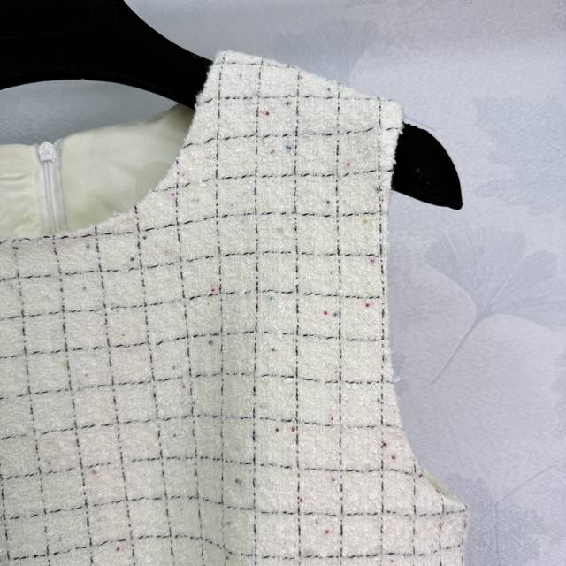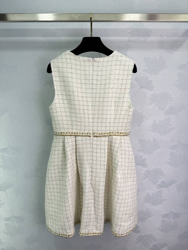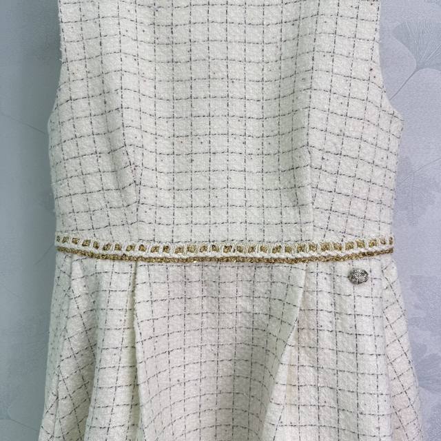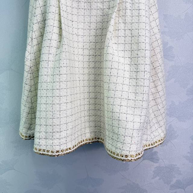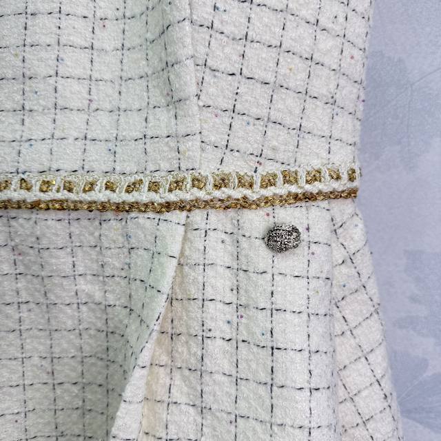 Chane* 2025 new woven dress with a custom-made hemmed vest dress. Made of imported YB wool, the material boasts a distinct texture visible to the naked eye, boasting a premium, coarse, striped wool fabric that exudes a sophisticated, socialite vibe. The engraved round button at the waist accentuates the delicate off-white weave, creating a fresh, refined, luxurious yet elegant look. The gold-woven hem accents at the waist and hem are elegant and captivating, creating a rich, layered look. A stylish and sophisticated choice for a sophisticated look! 1 color, 3 sizes Sml