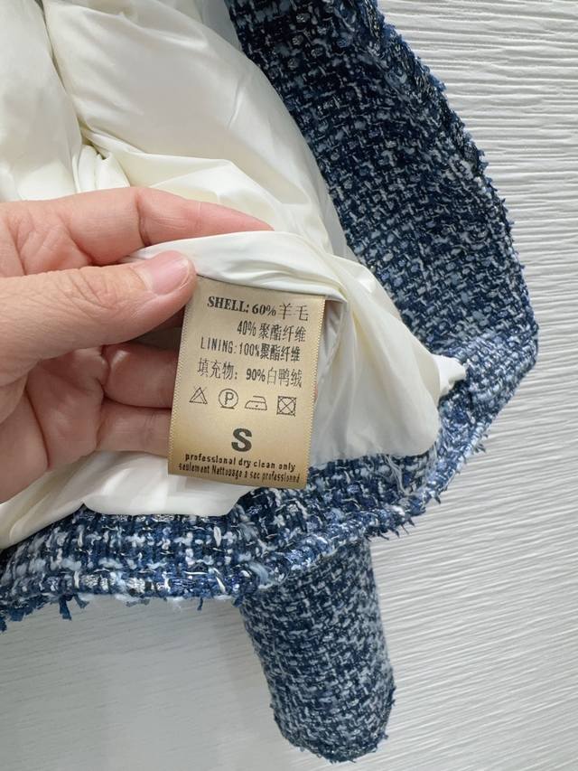 Chane* 2025Fw New Chanel-style French Classic Jacket - I fell in love at first sight! The design beautifully accentuates the neckline, instantly elevating your style. Custom buttons, a stunning fit, and the color is incredibly flattering. Sizes S, M, L. S: Shoulder width 36cm, Back length 50cm, Chest 90cm. 60% wool filling, 90% white duck down.