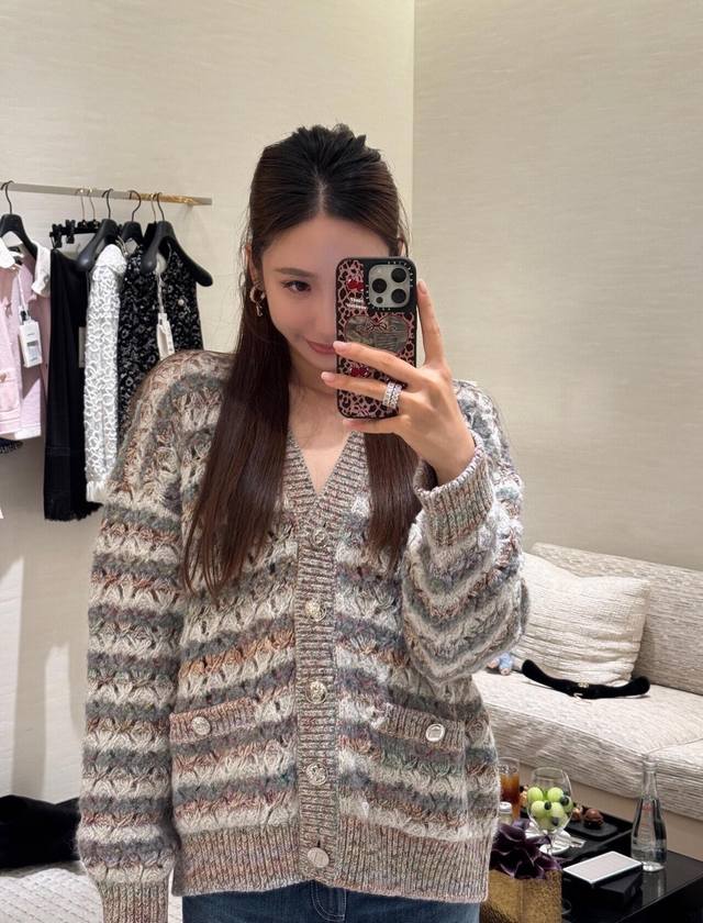 Chane* 25B High-End Handcrafted Collection New Hollow-Out Heavy Crochet V-Neck Loose Knit Cardigan | Exclusive Yb Development! High-Quality Production! Made from a premium wool blend fabric, this cardigan undergoes a double refinement of heavy crochet and openwork techniques, making every inch of the fabric resemble a three-dimensional artwork drawn by an artist with a needle and pen. The rich texture of the crochet and the subtle interplay of light and shadow in the openwork design, combined with the softness of the wool and the crispness of the craftsmanship, ensure both warmth for autumn and winter while giving the garment a strong visual artistic feel. Available now in sizes S, M, L, D, D.