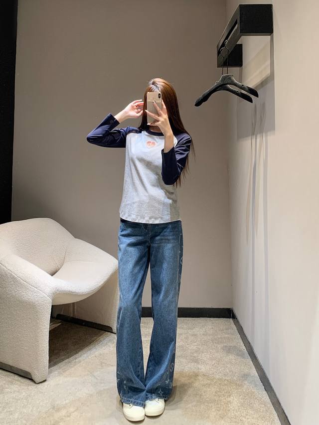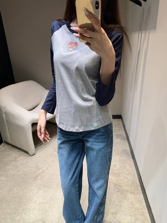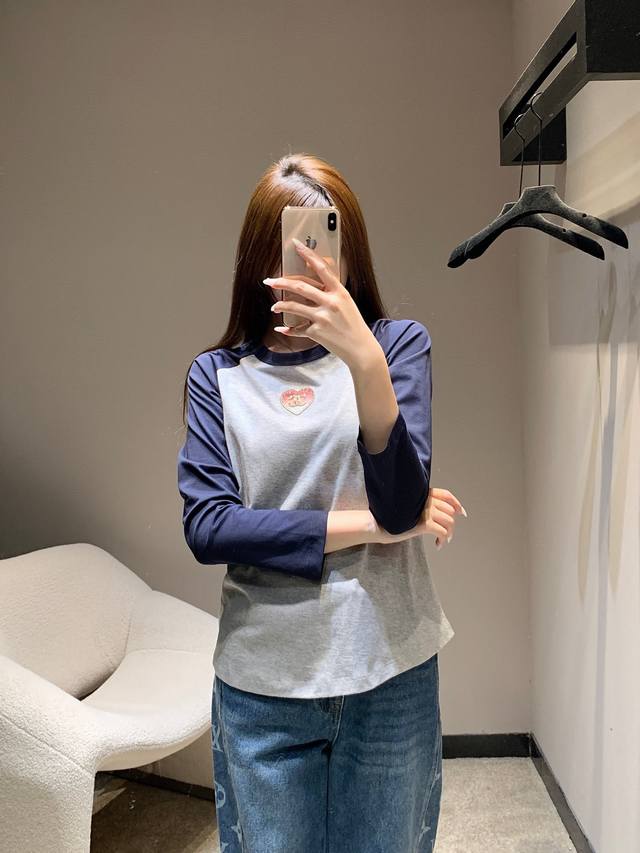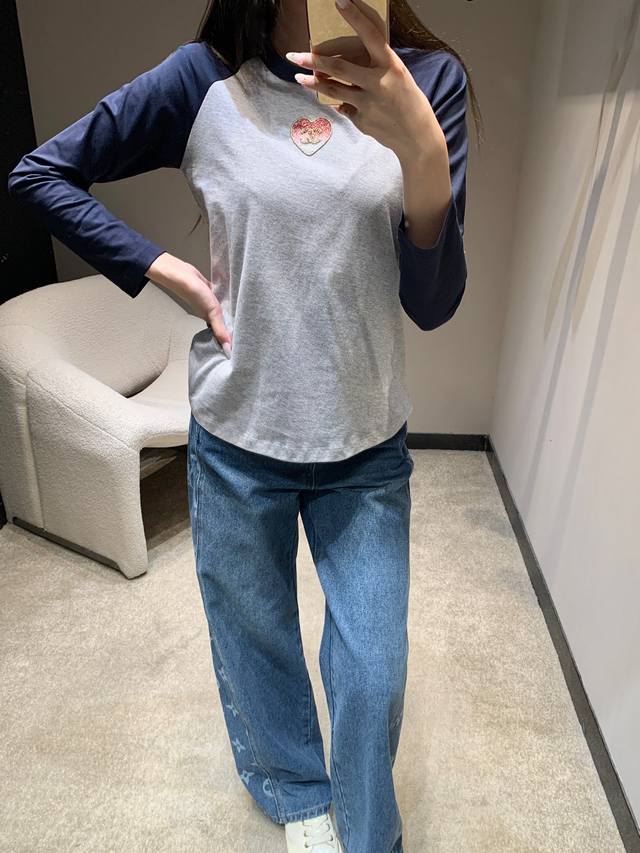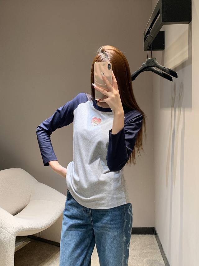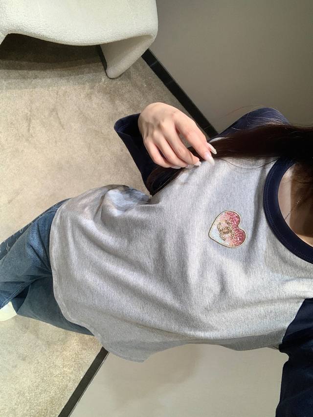 Chane* 25Fw Early Autumn New Arrival Heart Embroidery Double C Beaded Crew Neck Long Sleeve T-Shirt | Exclusive High-Quality Production! Made from select skin-friendly cotton fabric, soft, breathable, and yet structured; exquisite piping at the neckline and cuffs; retro raglan sleeve design; contrasting black and white, gray and navy blue color scheme, which not only flatters the arms but also injects retro vitality into the look. The fitted yet not tight cut is perfect for wearing alone or layering in early autumn! Available in SML DDD