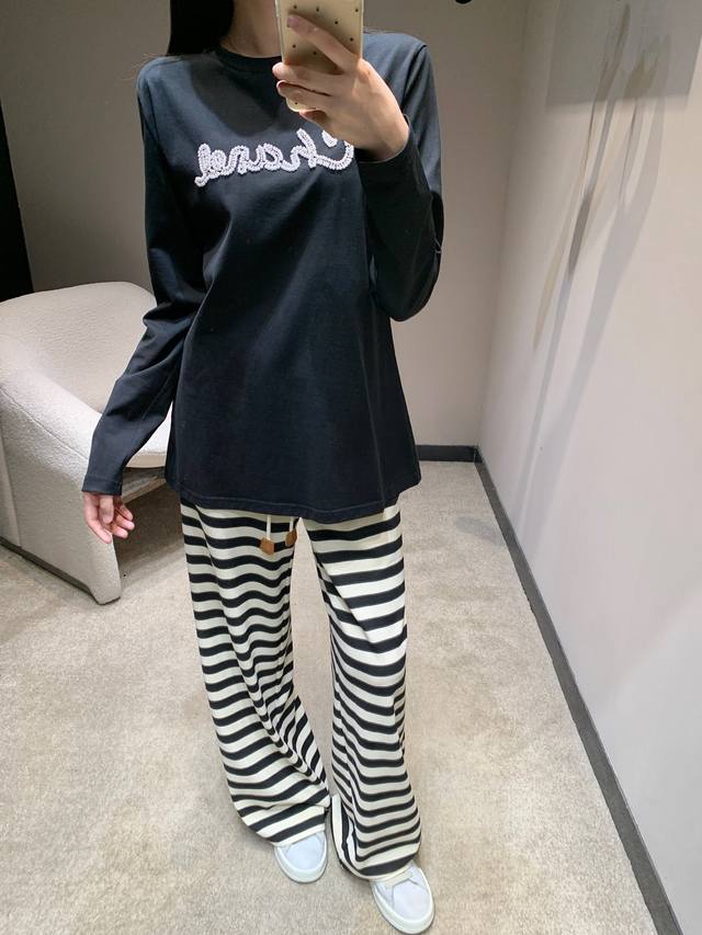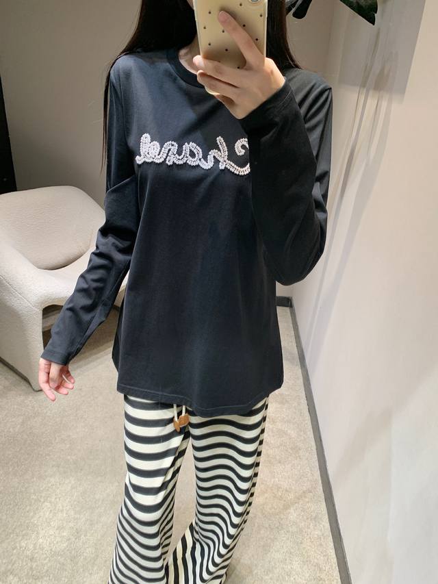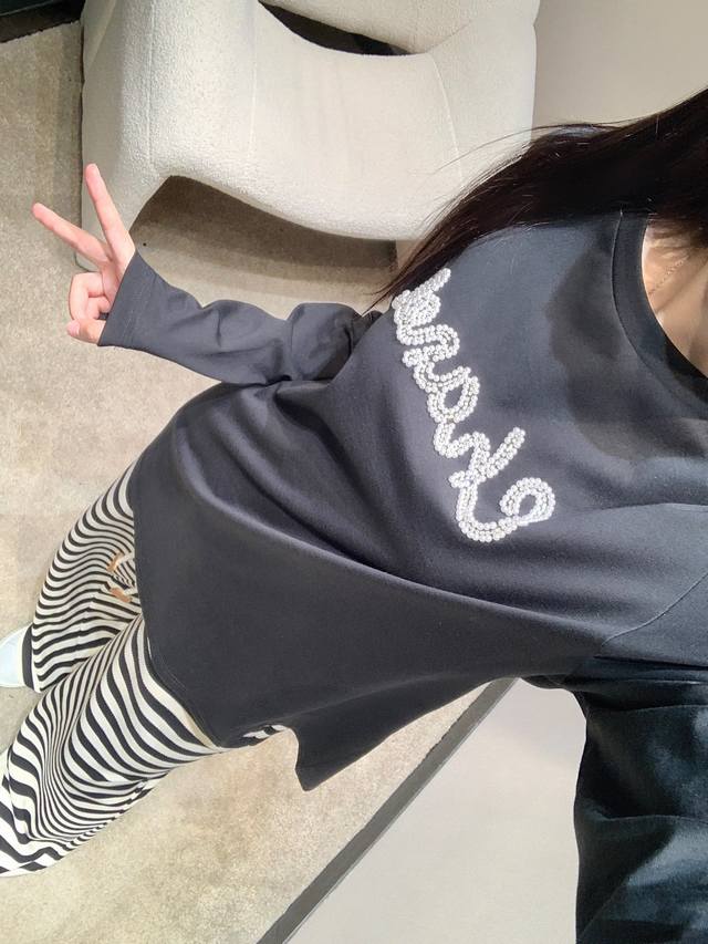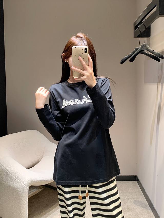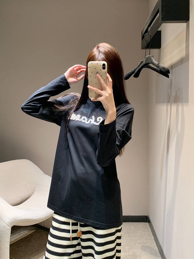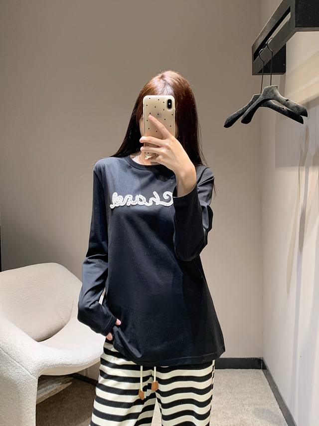 Chane* 25Fw New Early Autumn Beaded Letter Round Neck Long Sleeve T-shirt | Exclusive High Edition Product! A must-have long-sleeved T-shirt for your autumn and winter wardrobe! Long-sleeved T-shirts are Yyds! A favorite of fashionistas across seasons, full of youthful vitality, it