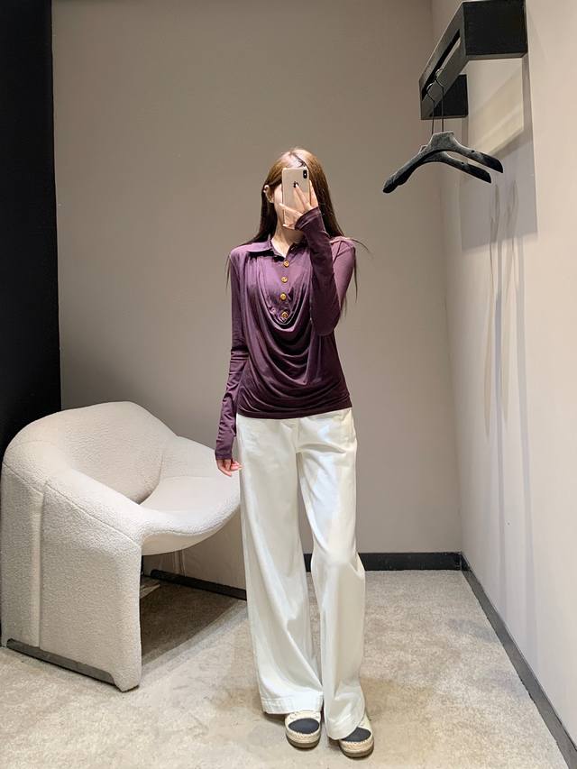 Chane* 25Fw's new early fall polo shirt with a flared collar and stretch long sl