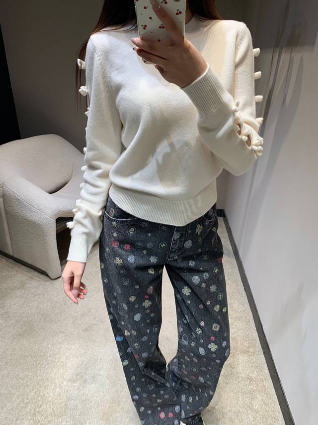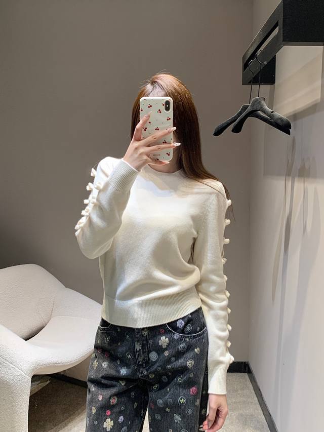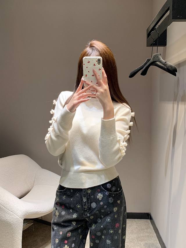Chane* 25K High-End Handcrafted Collection Bow-Knot Openwork Long-Sleeve Cashmere Knit Sweater | Exclusive Yb Development! High-Quality Production! Crafted with soft, supple cashmere, the delicate and skin-friendly cashmere fibers have a built-in soft-focus effect, leaving the skin light and warm. The sleeves are adorned with handmade 3D bows, paired with an openwork design, offering a perfect balance of sweet and cool, revealing just the right amount of skin and breaking away from the monotony of a basic style. The mock neck and fitted waist create a flattering fit without being restrictive, suitable for all body types. Available now in sizes S, M, L, D.D.