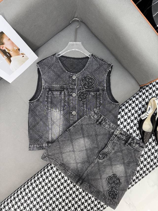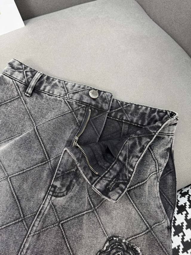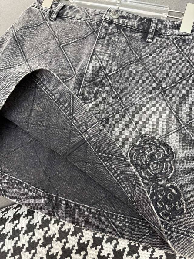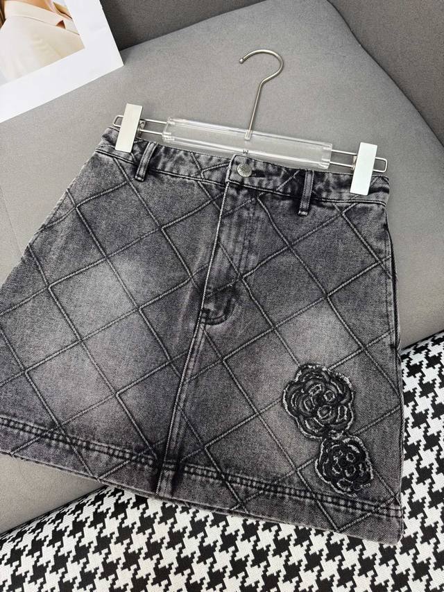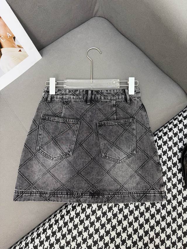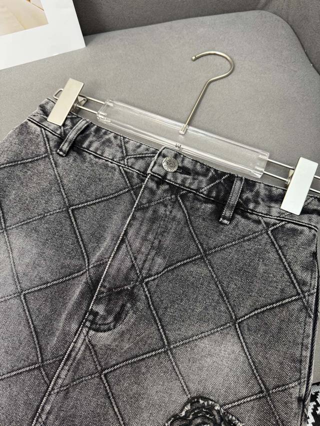 / Chane* 25Ss new denim skirt diamond check fabric decoration simple and versatile