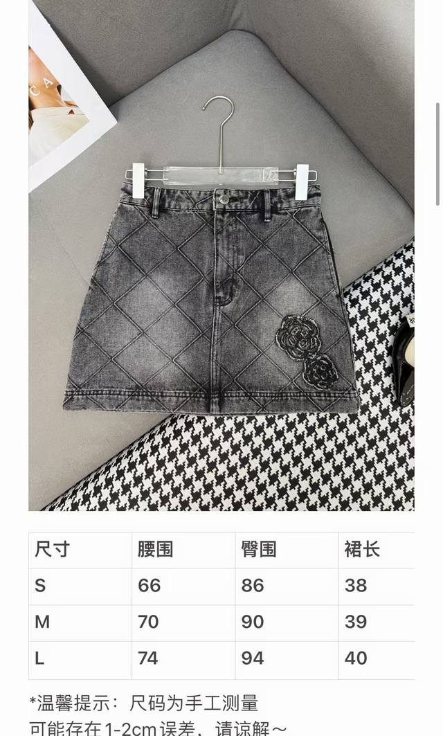 Chane* 25Ss new denim skirt diamond check fabric decoration simple and versatile solid color three sizes Sml