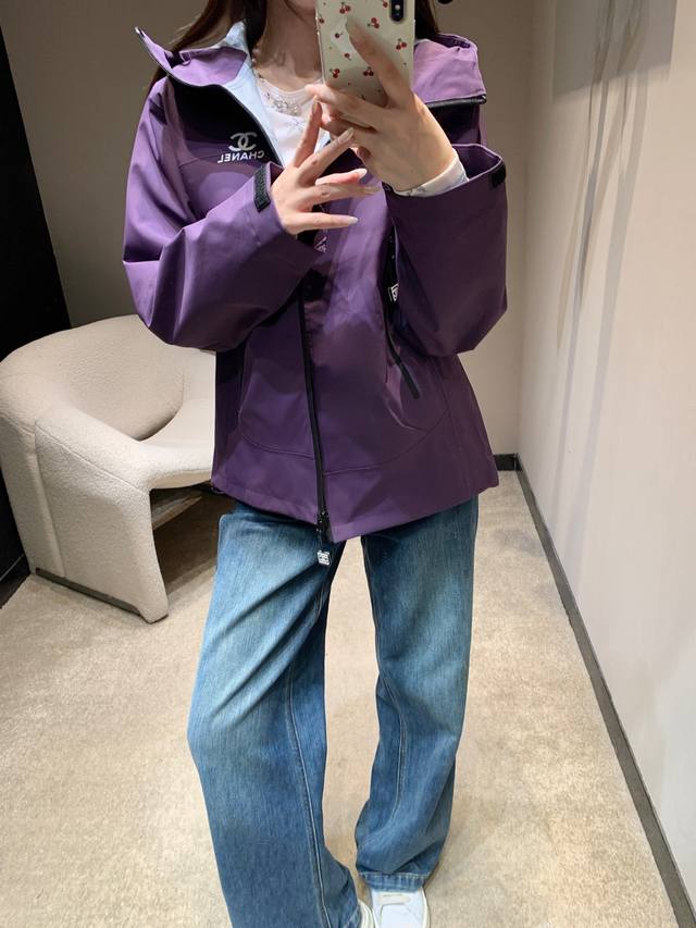Chane* 26Ss Vintage Collection New Windproof and Waterproof Hooded Sports Jacket | Exclusive High-Quality Production! Made with high-grade windproof and waterproof technical fabric, it has a delicate matte finish with a crisp feel. The hood and hidden drawstring design provide both everyday wind protection and a relaxed, effortless "hoodie vibe." The reverse lettering and classic double C logo on the chest exude a vintage feel, while details such as the double C metal zipper and contrasting trim showcase the exquisite craftsmanship of a luxury brand. Available now in ML, XL, XL, and DDD sizes.