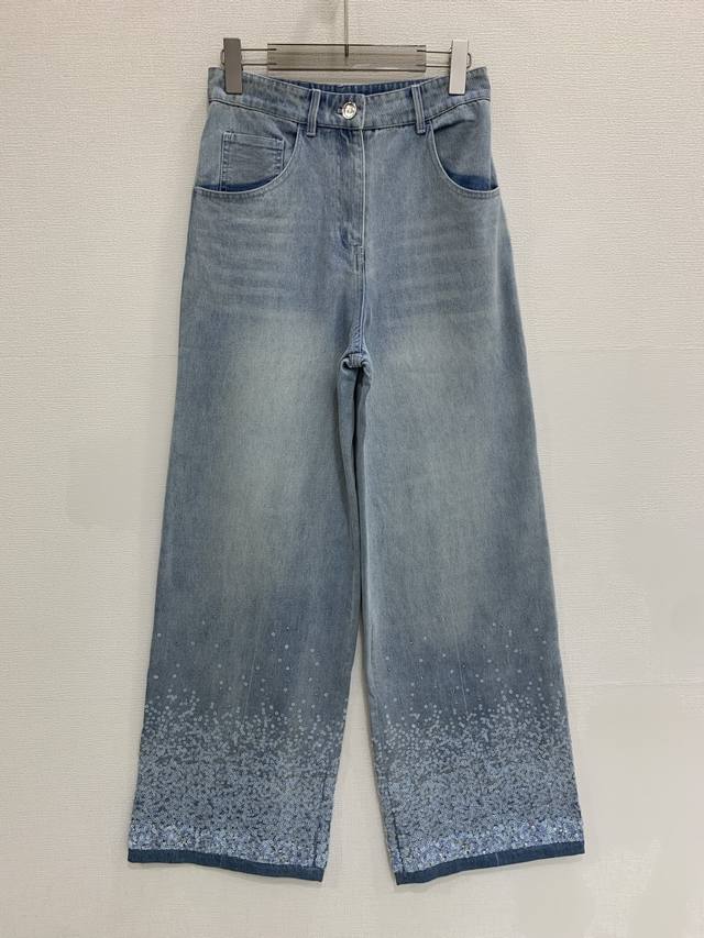 Chane* Casual Fashion Heavy-Duty Sequin Embroidered Straight Leg Jeans DDD Sizes: 36 38 40 DDD Size 36: Waist 70cm, Hips 88cm, Length 112cm DDD