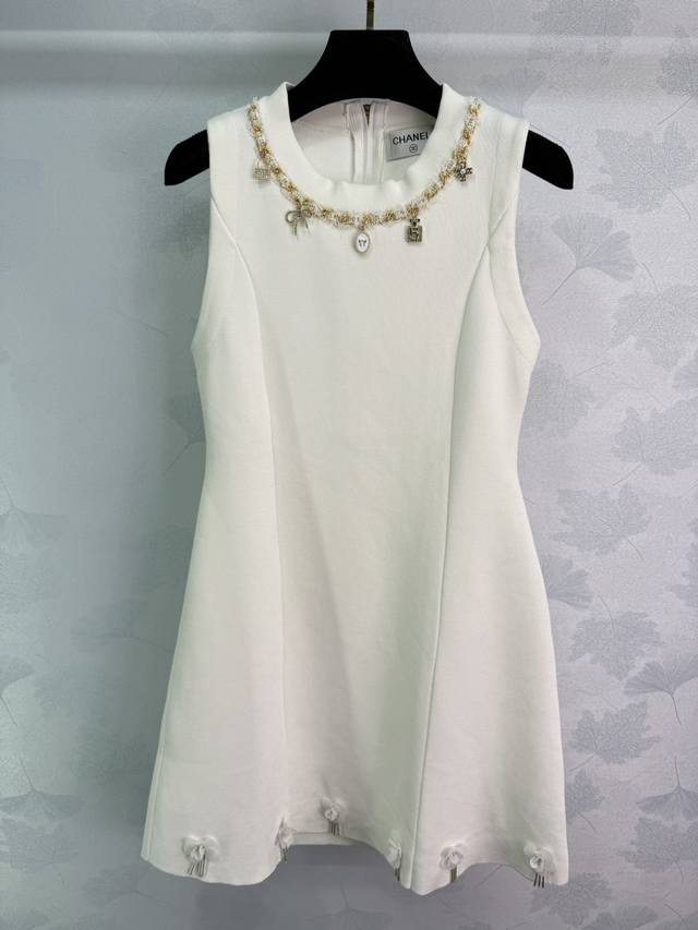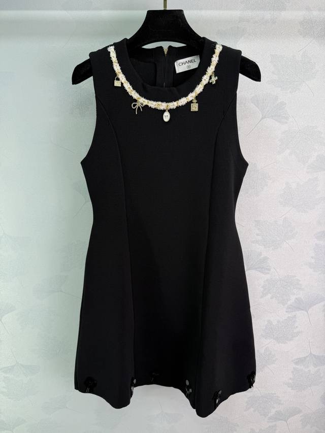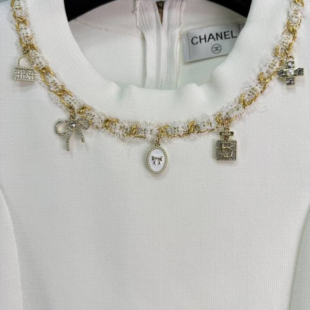 Chane* Chanel-inspired dress, available in black and white, features a delicate pearl necklace at the neckline and floral tassels at the hem. The A-line silhouette is super flattering. The knit fabric is soft and comfortable, perfect for spring and fall wear. Available in sizes S-M-L, T-2-2-6B.