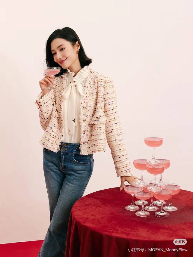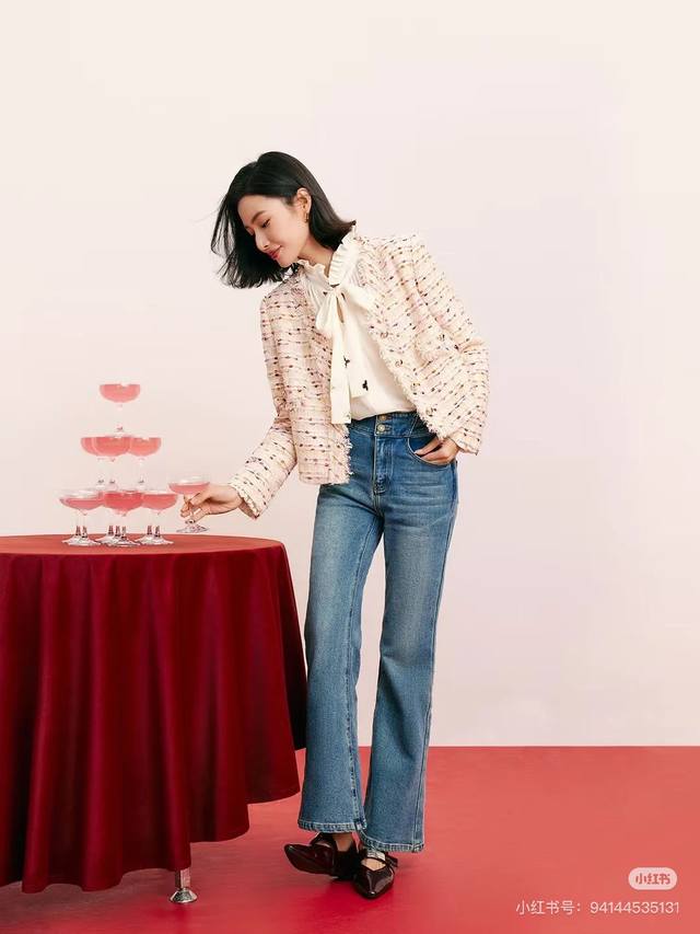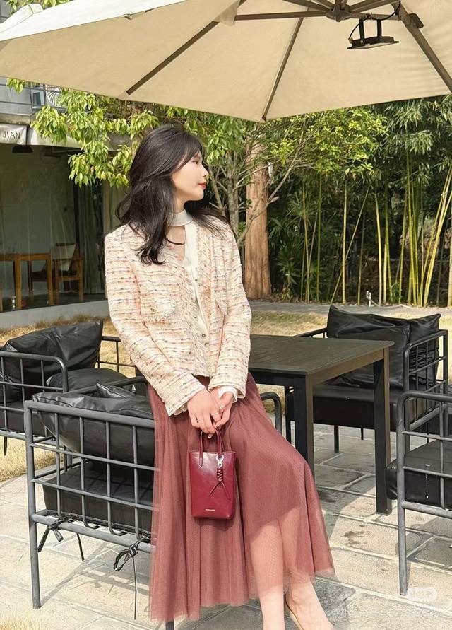 Chane* Early Autumn New High-End Custom Heart Button Decoration, Metal Chain Stitched Inside Hem, Draped and Stylish, Elegant Chanel-Style Colorful Tweed Knit Short V-Neck Long-Sleeve Jacket! Size M: Shoulder Width 38cm with Shoulder Pads, Bust 92cm, Sleeve Length 58cm, Length 52cm. (DDD)