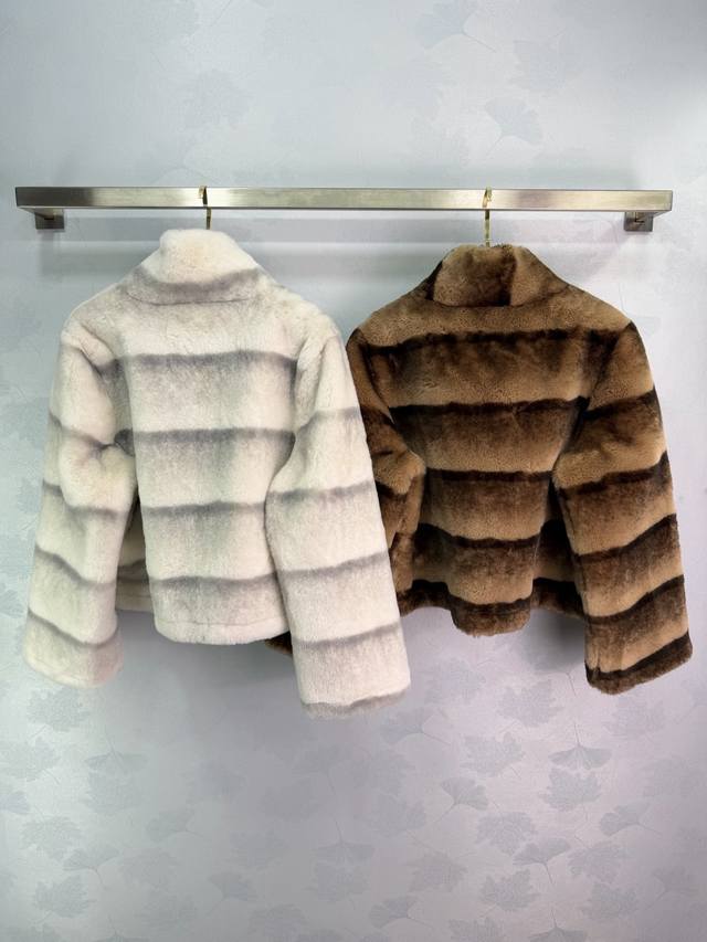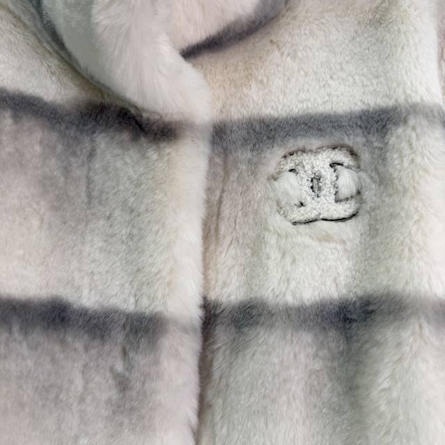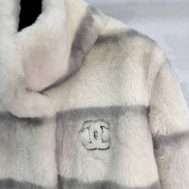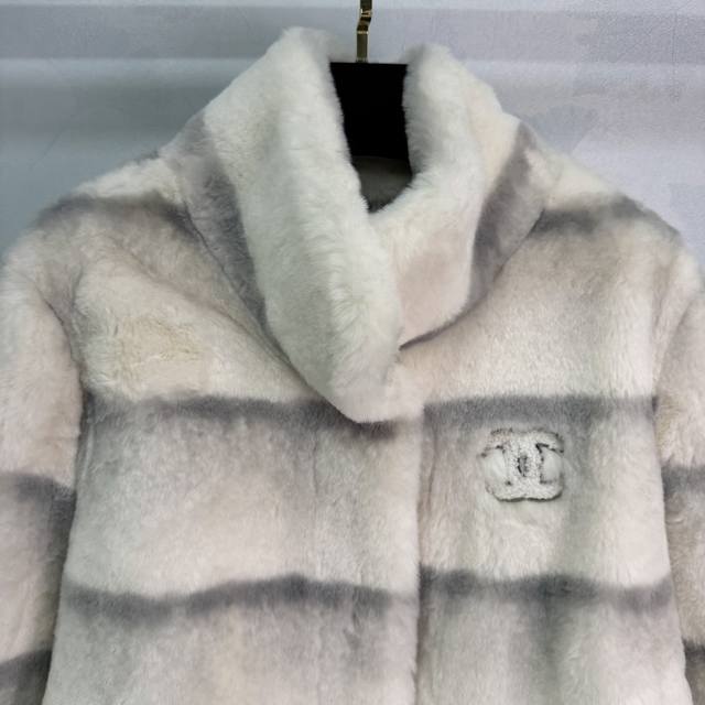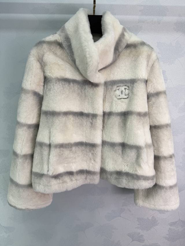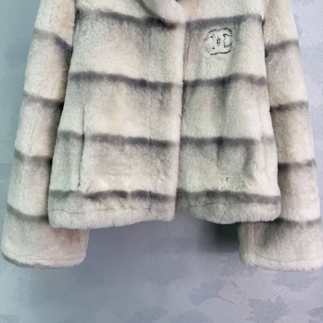 Chane* Faux Mink Fur Coat. Made from eco-friendly materials, the surface is soft and delicate, providing exceptional warmth and comfort for winter. The classic lapel and cropped cut are simple and stylish, making it suitable for both commuting and everyday wear. The off-white color paired with light gray stripes exudes a gentle and elegant charm. The distinctive logo on the chest adds a fashionable and versatile touch, looking great with both skirts and trousers. Available in 3 colors and sizes: S, M, L. T226B. DDD