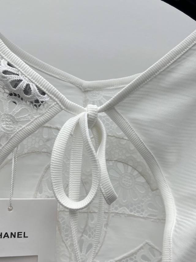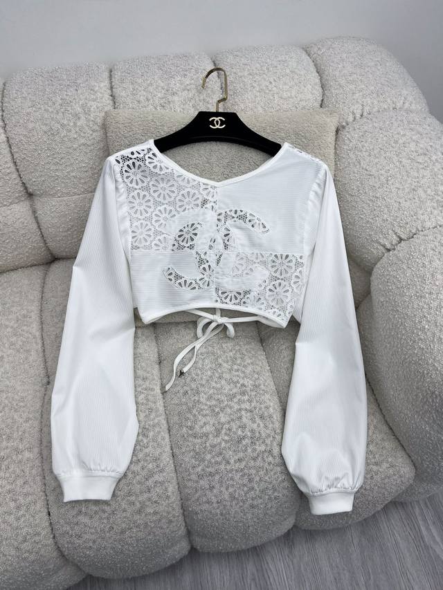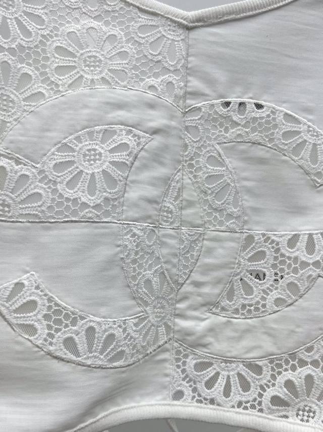 / Chane* Hollow backless top Custom cotton poplin fabric Double C on the chest usi