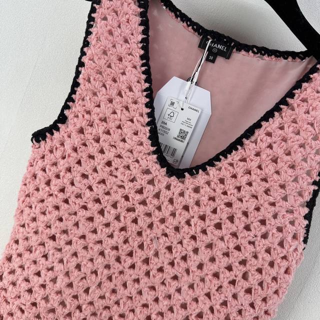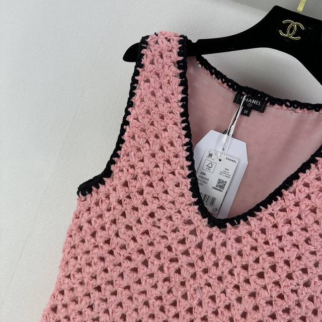 25 Early Fall's newest contrast-colored woven V-neck vest dress! Custom blended knit fabric, rich texture, and authentic appearance. Custom rhinestone double-C button embellishments showcase the brand's premium style. Contrast-colored hems create a striking contrast with the softer color scheme, further enhancing the silhouette. Fresh and refined, the regular fit is versatile and adaptable to any body type, creating a romantic and relaxed lifestyle!
