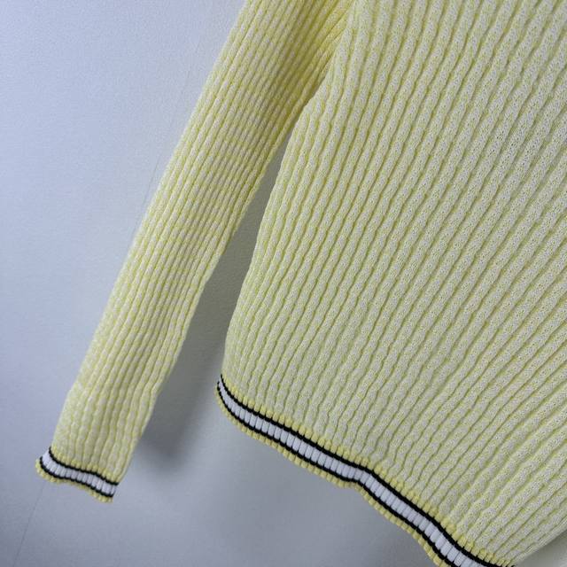 25 New Fall Knitted Round Neck Colorful Long Sleeves Made of High-Quality Knitting Craftsmanship with a Fine Texture and Superior Quality. The Classic Double C Logo Embellished on the Chest in a Low-Key and Luxurious Style, Highlighting the Brand's Identity. Contrasting Stripes on the Collar and Cuffs Add a Touch of Detail and Layering, Stylish and Chic, Easily a Spotlight.