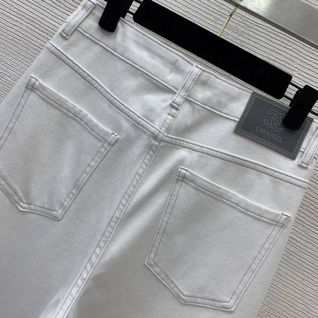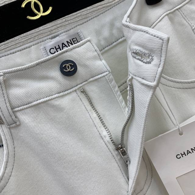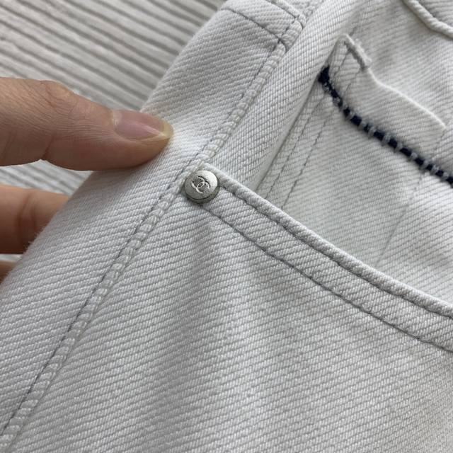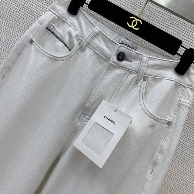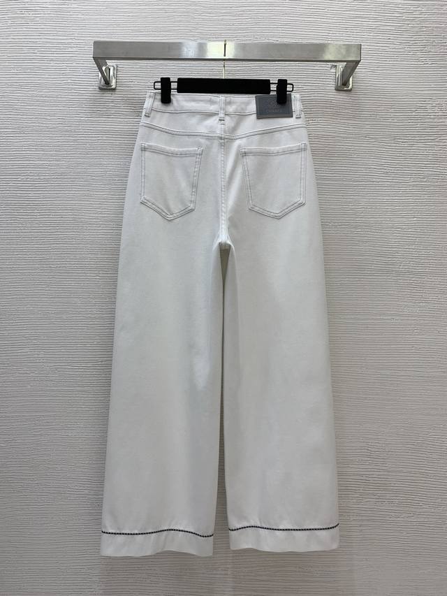 Chane* New High-End Custom Original Letter Logo Hardware Accessories, Color-Blocked Striped Edge Loose-Fitting Stylish Straight-Leg Wide-Leg Jeans! Size M: Waist 68cm (slightly stretchy), Length 98cm DDD