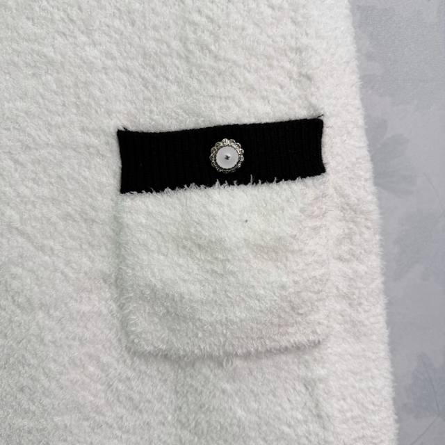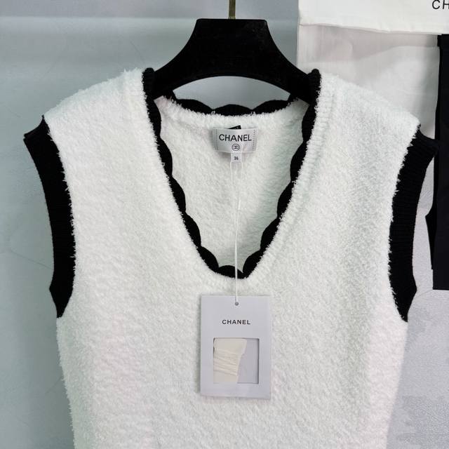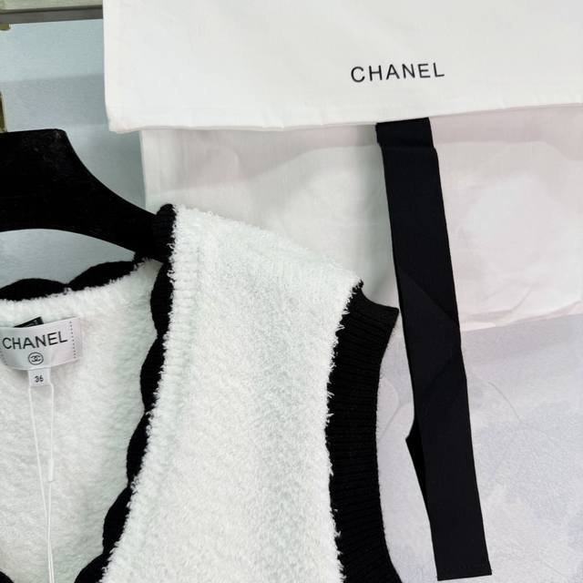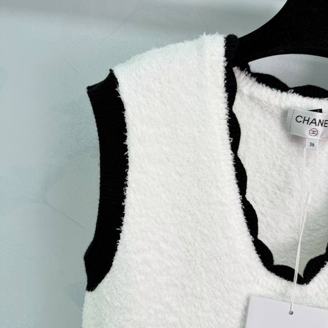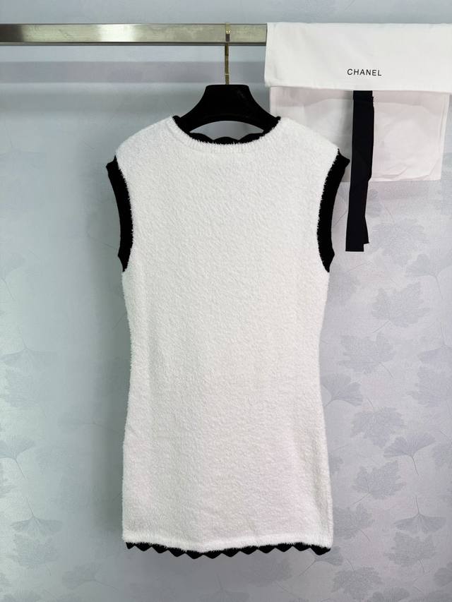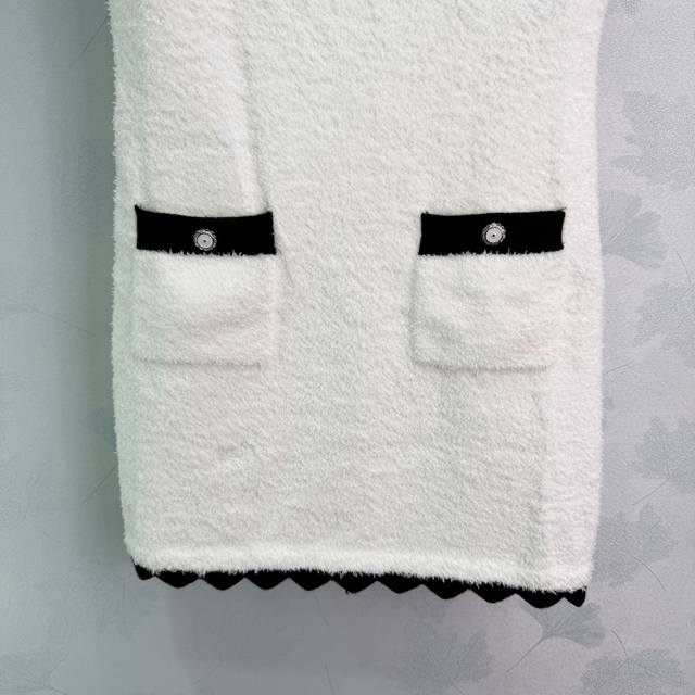 Chane* series knitted vest dress, classic black and white color scheme, V-neck design to flatter the neckline, black trim to add a touch of sophistication. The dress features two black pockets adorned with metal buttons, showcasing impeccable attention to detail. Made of stretchy knit fabric, the dress boasts a flattering fit, offering both comfort and style, making it suitable for both casual and formal occasions. The moderate length allows for elegant pairing with both heels and flats, easily creating various looks. Available in 1 color and 3 sizes (S, M, L). T226B. DDD