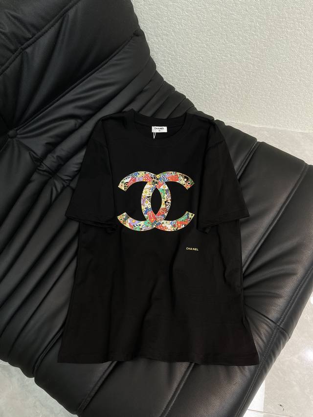 Chane Spring/Summer 2026 New Classic Double C Print Crew Neck Short Sleeve T-Shirt with Chain Print Pattern. Elegant and artistic, enhancing brand identity. Fashionable and sophisticated, instantly creating a unique style. Stylish and relaxed, perfect for wearing alone or layering. Sml Aa DDD