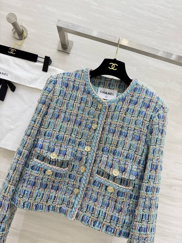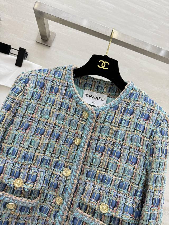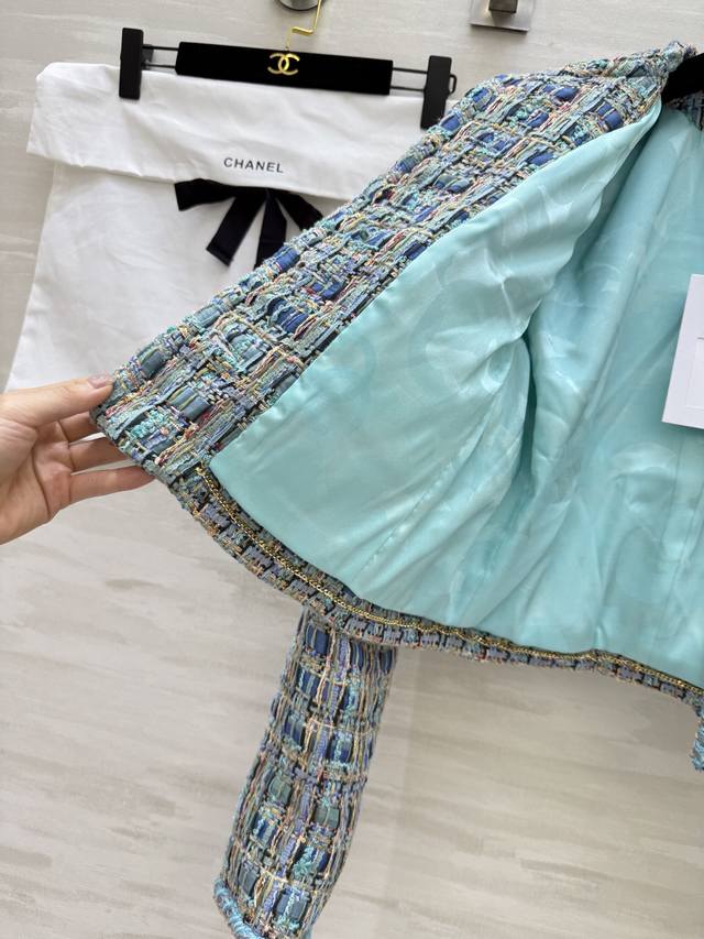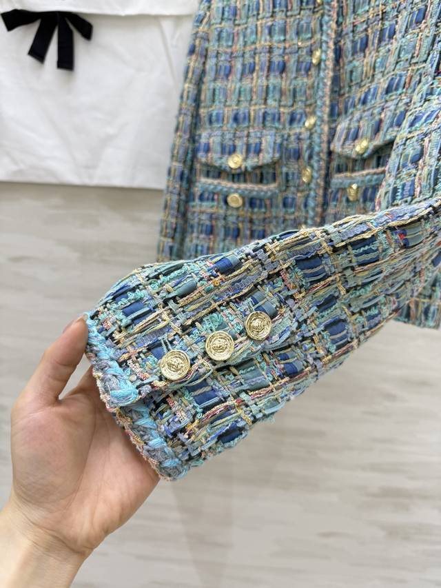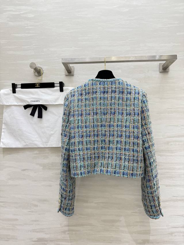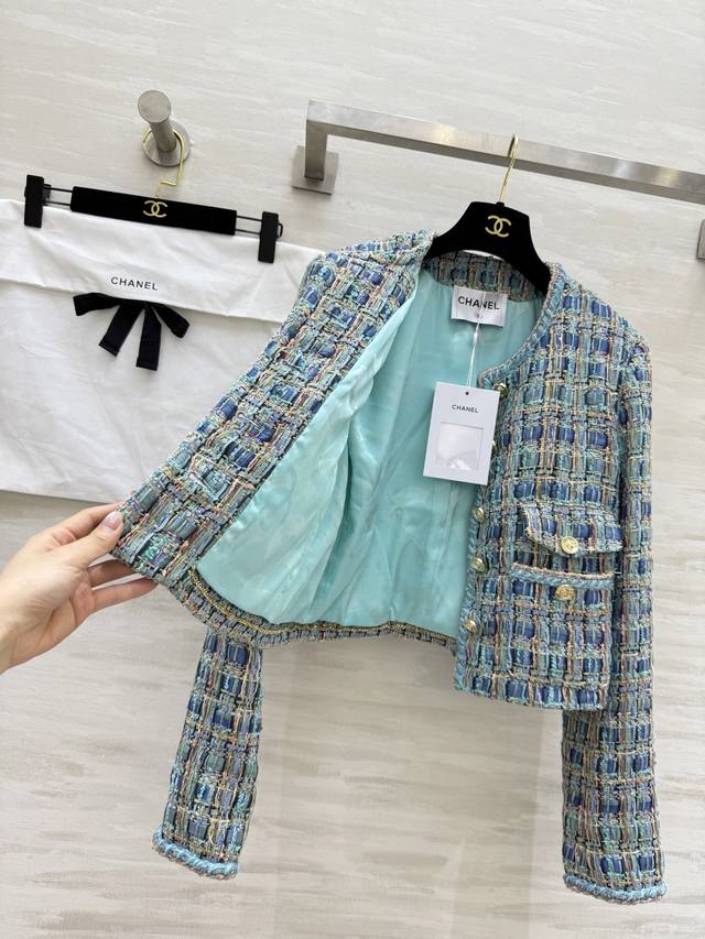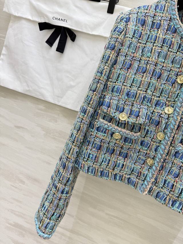 Chane2 autumn and winter new peacock blue woven jacket Original development woven fabric has a high-end color scheme Retro round neck is very elegant and generous party occasions can be controlled daily High quality In stock Size: SMLS Shoulder width: 37, chest: 90, length: 45