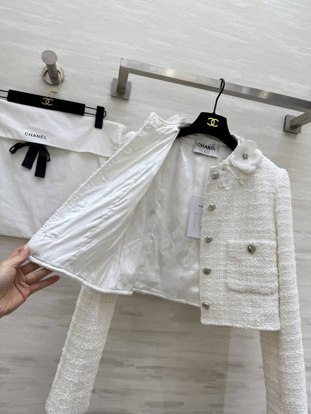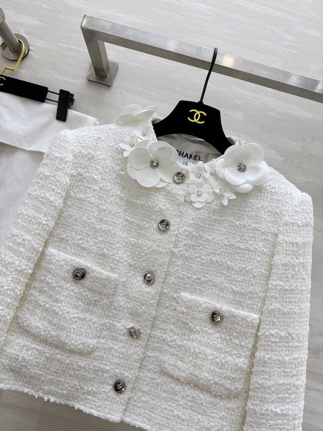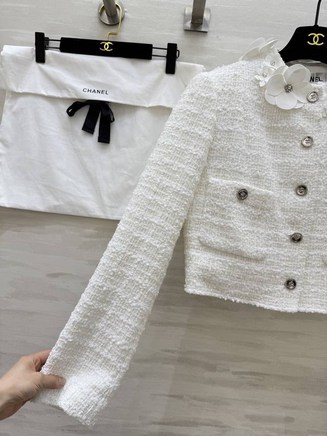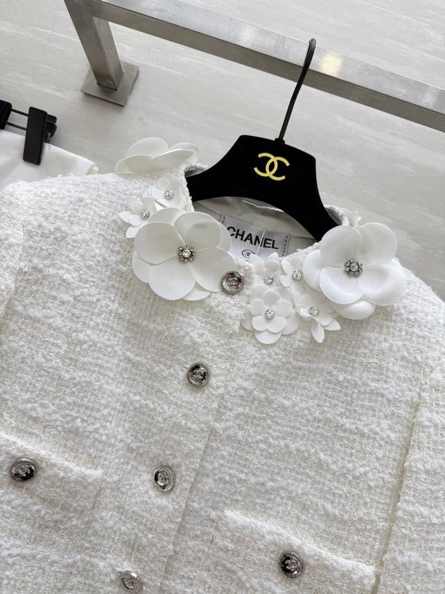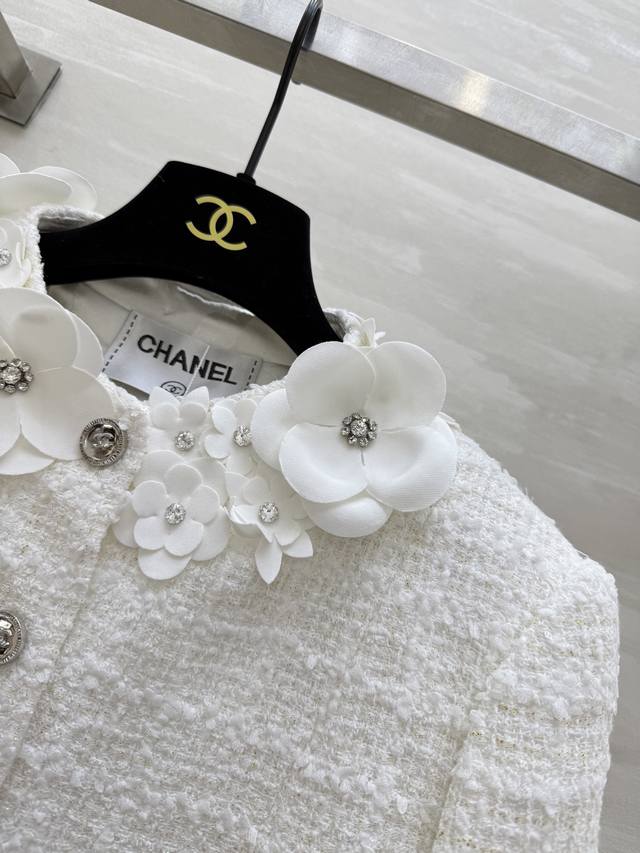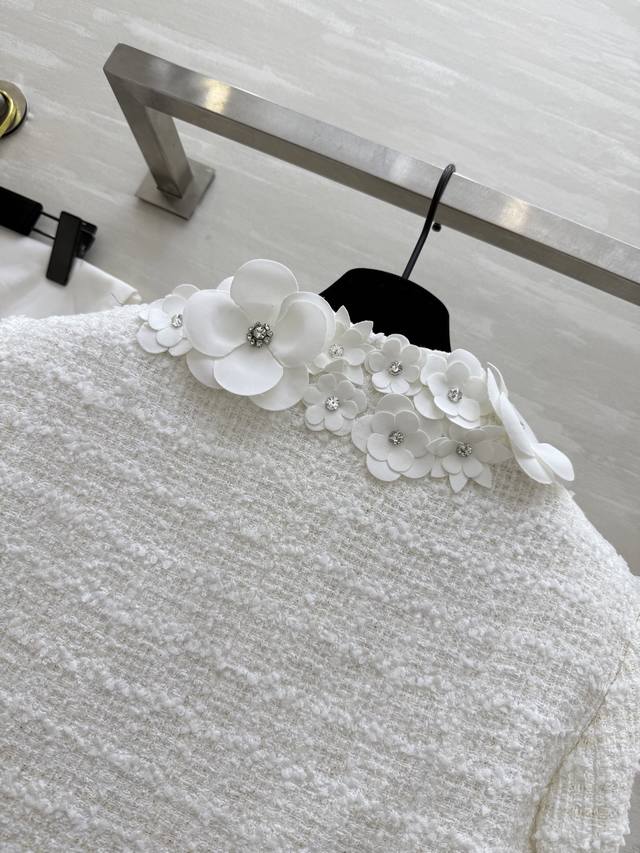 Chane2 autumn and winter new three-dimensional flower decorated coat customized plaid woven fabric heavy and weighty three-dimensional handmade small flower decoration exquisite and elegant high quality spot first release Size: 36 38 40 36 size shoulder width: 39, chest: 96, length: 40