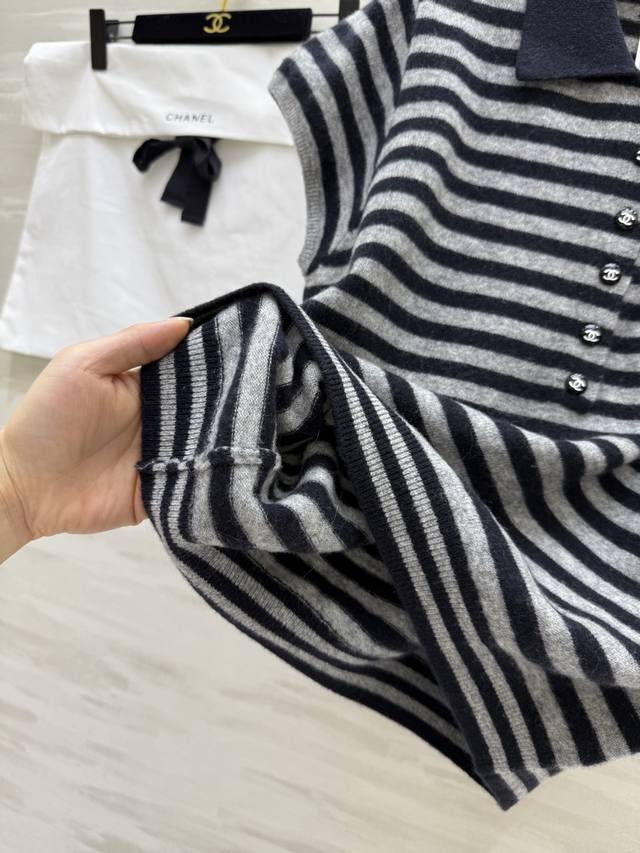 Chane2 autumn and winter new wool lapel striped short-sleeved top 100% wool texture warm and comfortable high quality customized delivery dust bag Size: 36 38 40 36 size shoulder width: 36, chest circumference: 100, length: 55
