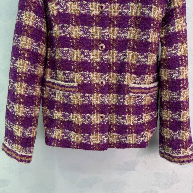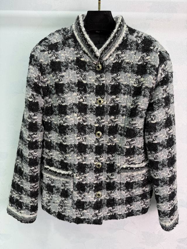 Chane*2025 Autumn/Winter New Woven Stand Collar Dress Outerwear 25Coco Ski Series# Custom Yb Imported coarse wool fabric, with obvious texture and visible wool, superior quality. The tweed striped wool fabric creates a classic elegant style. The small stand collar and structured shoulders of this coat feature contrasting stripes on the cuffs and pockets, a single-breasted double C snap button, and retro contrasting glaze. The high-saturation Hong Kong style color scheme and woven texture create a luxurious yet elegant look. The straight cut is slimming and flattering, transforming you into a retro magazine cover girl. A top choice for fashionable autumn/winter outfits, exuding a glamorous aura! 3 colors, 3 sizes, S, M, L, T226B. DDD