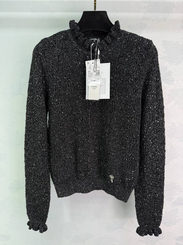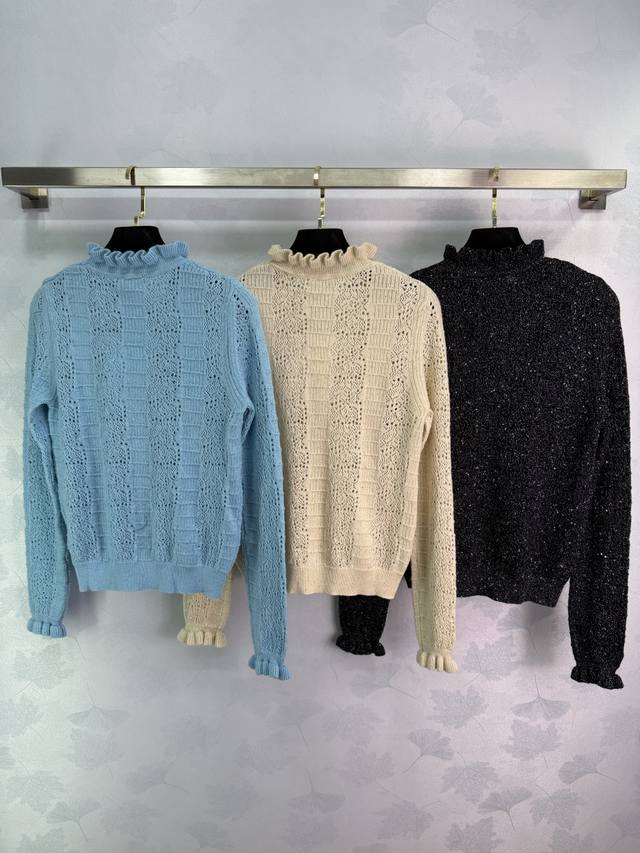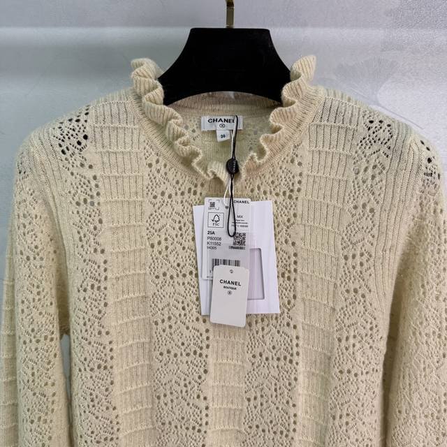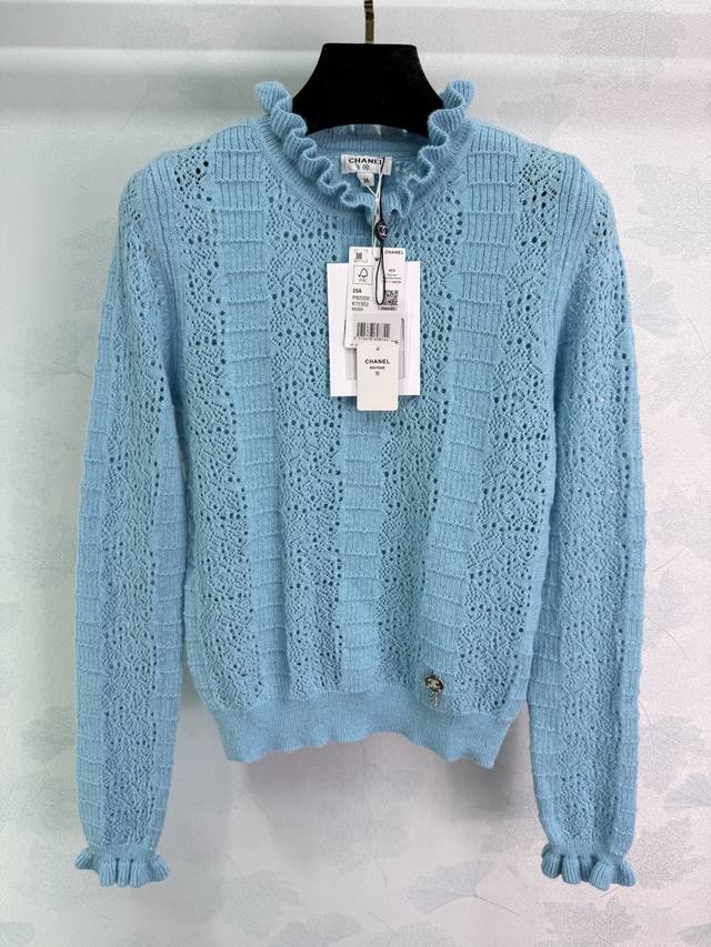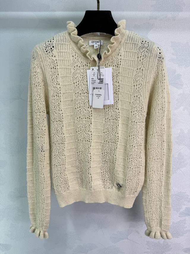 Chane*2025 Early Fall new lace hollow knit top, custom-woven from Yb cashmere ya