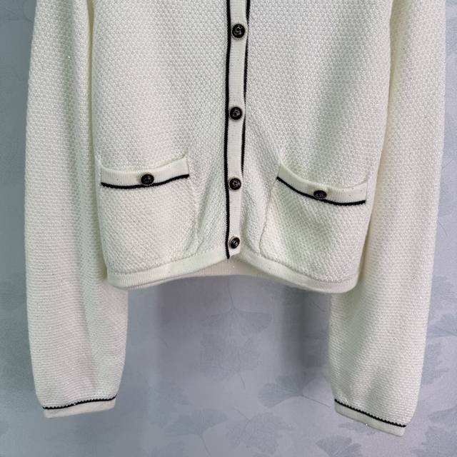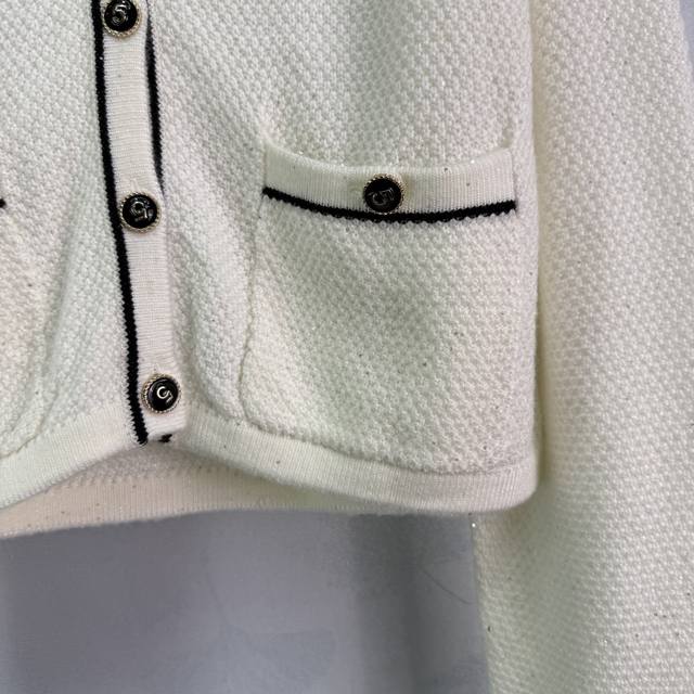 Chane*2025 Fall/Winter new color-blocked knitted cardigan with classic double-pocket design and custom button embellishments. Stylish and minimalist, this elegant round neckline is a perfect fit for a slimming, youthful, and sophisticated look. Available in 2 colors and 3 sizes (Sml, T226B,