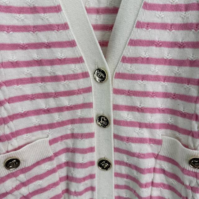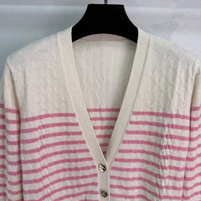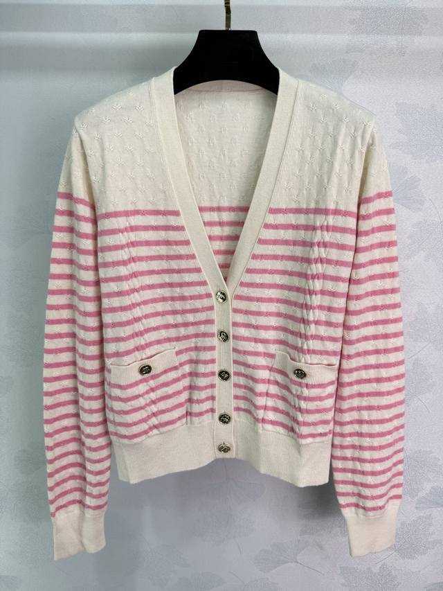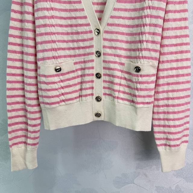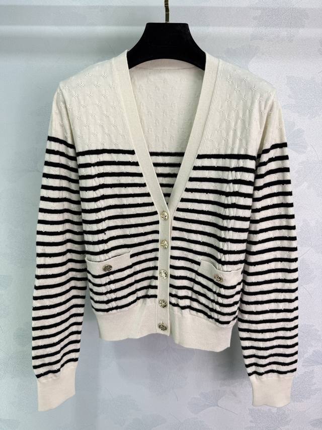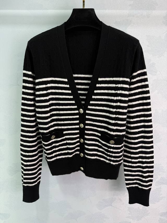 Chane*2025 Fall/Winter new striped woven V-neck cardigan. Custom-woven Yb cashme