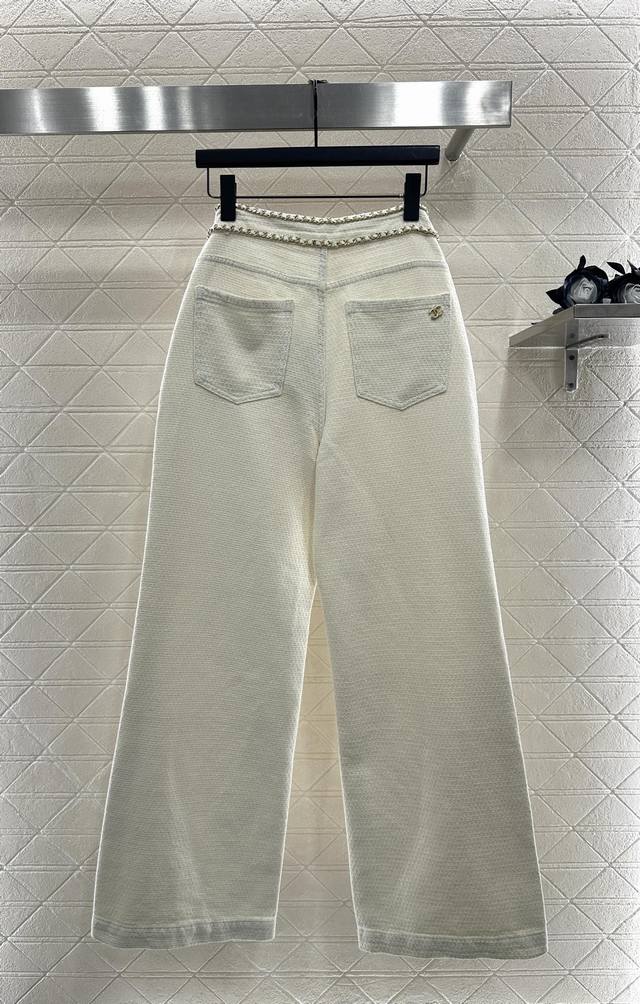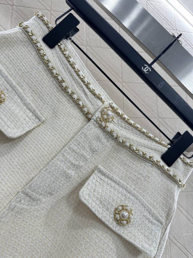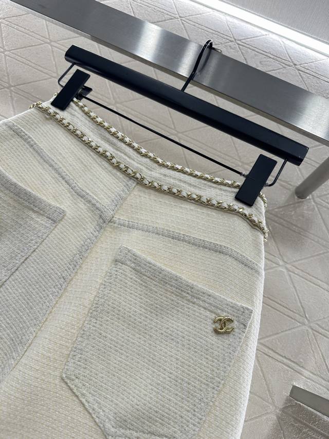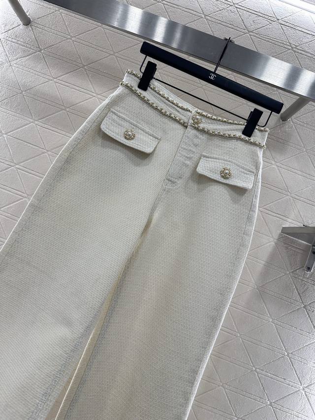 Chane*2025 New Arrival DDD Belt Chain Wide-Leg Trousers DDD Custom Yb Imported coarse wool fabric, with a distinct texture, high-end and fashionable. High-waisted wide-leg trousers with an all-over embossed woven texture, both retro and stylish. Features a leather chain embellishment at the waist, symmetrical pockets with chain-encircled pearl buckle details, adding to the overall style and exuding sophistication. The wide-leg cut is forgiving and flattering, easily creating a good proportion. Custom fabric and accessories, please look for the high-quality version, 2 colors available. DDD