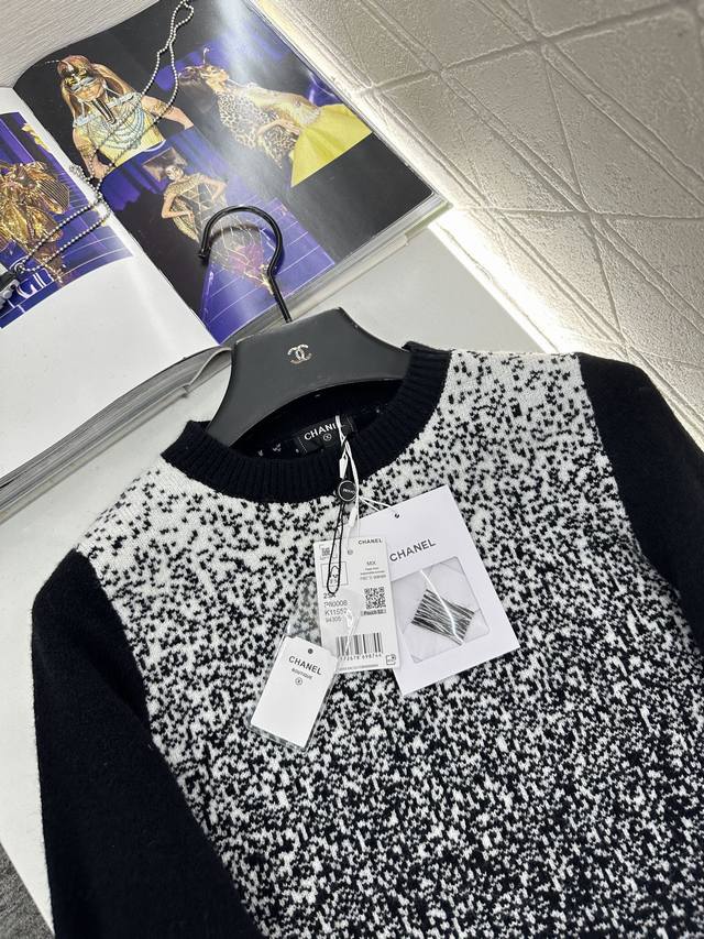 Chane*2025 New Arrival DDD Gradient Knit Pullover Sweater DDD Made with custom Yb wool yarn, the texture is delicate and comfortable to wear. The loose pullover sweater style is tapered with elastic ribbed trim. The sleeves are in solid color, while the main body features a gradient of hearts in varying densities, creating a striking contrast. A double C logo adorns the chest, and crochet lettering echoes the design at the back hem. The overall look is sophisticated yet casual, exuding a fashionable vibe. Custom fabrics and accessories, please ensure you choose the high-quality version. 4 colors available, sizes 36, 38, and 40. DDD