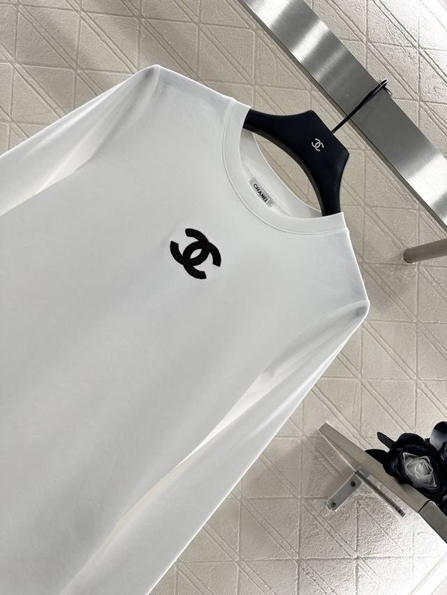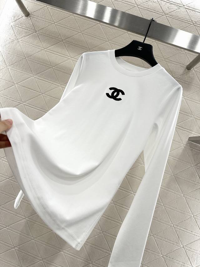 Chane*2025 New Arrivals Crew-Neck Double C Long-Sleeved Top Custom Yb virgin cot