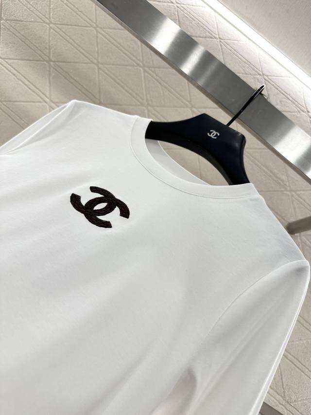 Custom Yb virgin cotton material, breathable, comfortable, and textured. The regular crew-neck cut highlights the brand's style. Made from heavyweight pure cotton, it offers a stretchy, form-fitting feel for a slimming effect. The woven Double C logo is crafted on the chest to enhance the brand's identity, creating a stylish and sophisticated look. This stylish, relaxed fit looks great worn alone or as an inner layer. Stylish and custom-made fabrics and accessories are available in two colors: 36, 38, and 40.