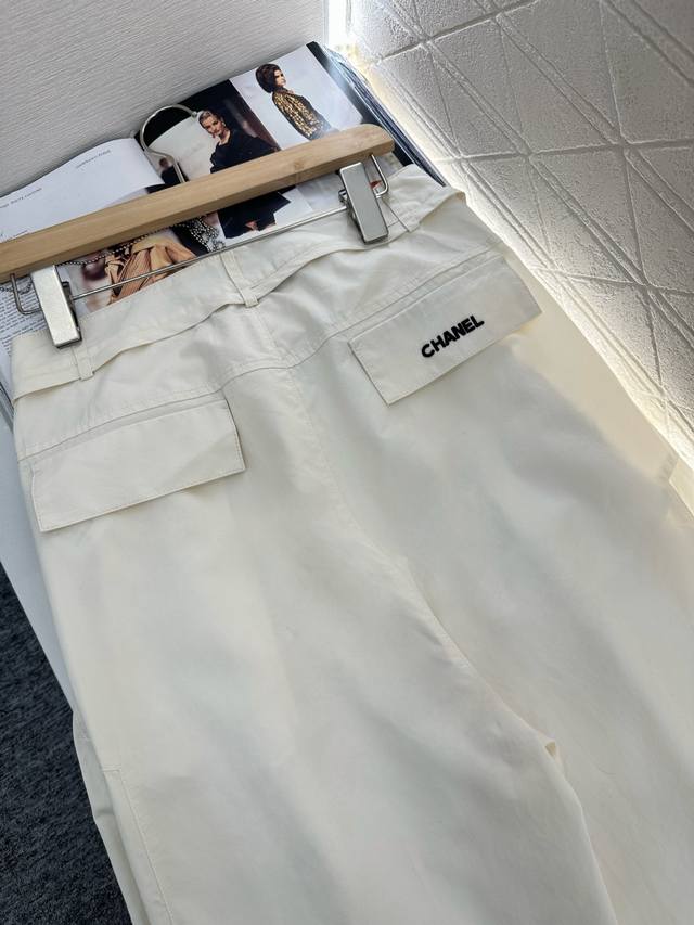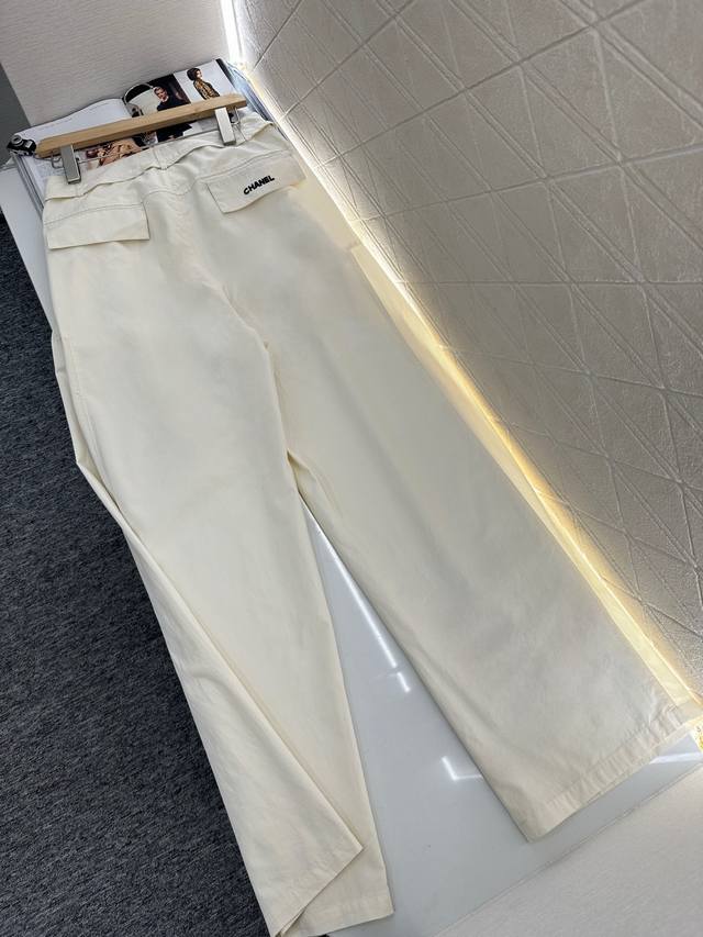 Customized Yb imported Tencel cotton material, light and comfortable to wear, breathable work pants with three-dimensional tailoring that fits the body's leg lines better, accommodating the body to show long legs with good proportions, drawstring waist for adjustment, single-sided rhinestone double C logo embellishment and buttoned swallow logo to add a fashionable feel and charm, casually match with tops for daily wear, interpreting a high-end, relaxed style, fashionable and versatile, high version, 2 colors 36 38 40