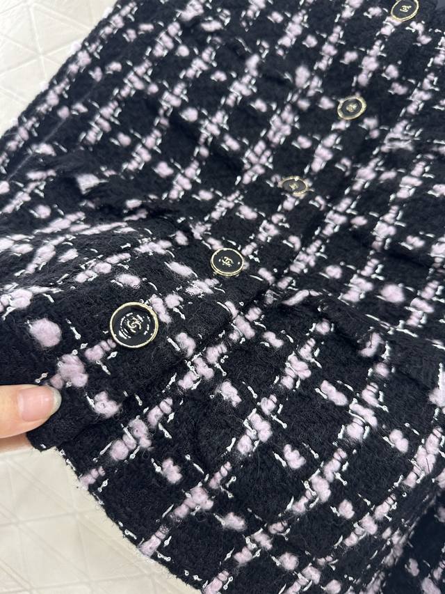 Custom Yb imported wool tweed with a distinct texture visible to the naked eye. The high-quality coarse striped tweed fabric creates a model of celebrity style. Celebrity suit shape. The jacket has a single row of printed round buttons on the front, exquisite pink and black color scheme. The woven texture is luxurious yet elegant. The fringed fringe trims on the waist and pocket edges are elegant and charming, with rich and layered design. Paired with the same series of micro A straight skirt, this is the first choice for fashionable and sophisticated wear. Customized fabrics and accessories are the preferred version of the high version 36 38 40. Jacket 370 and skirt 250