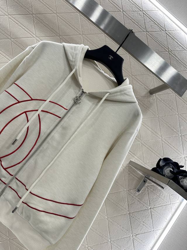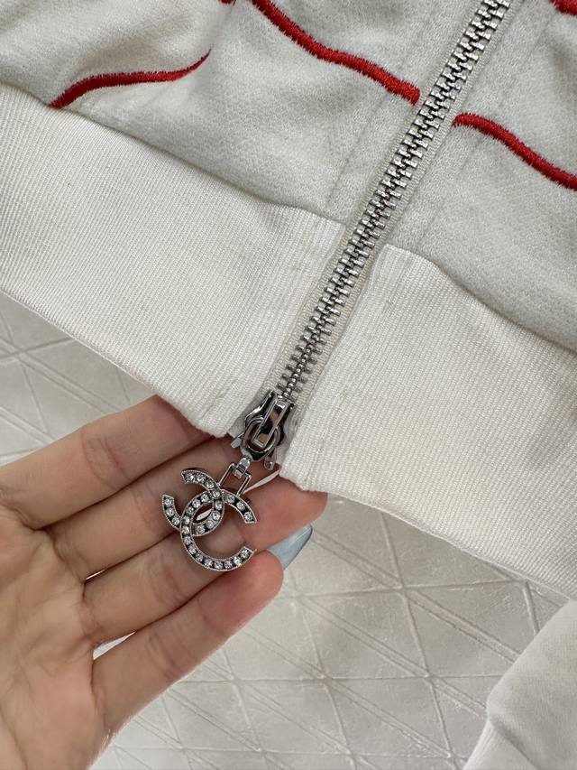 Custom Yb imported cotton and nylon material, comfortable and easy to wear, with a smooth and stylish drape. This casual hooded zippered jacket and pants set features an asymmetrical double C logo on the front, paired with a zipper and rhinestone double C engraved buckle, creating a high-profile luxury that highlights the brand's texture and makes it more advanced. Paired with the same series of wide-leg drawstring straight pants, the details echo the waistband with contrasting webbing, adding a casual and fashionable feel, making the visual effect richer, and the set is fashionable and stylish. For customized fabrics and accessories, look for the high version 36, 38, 40. Set