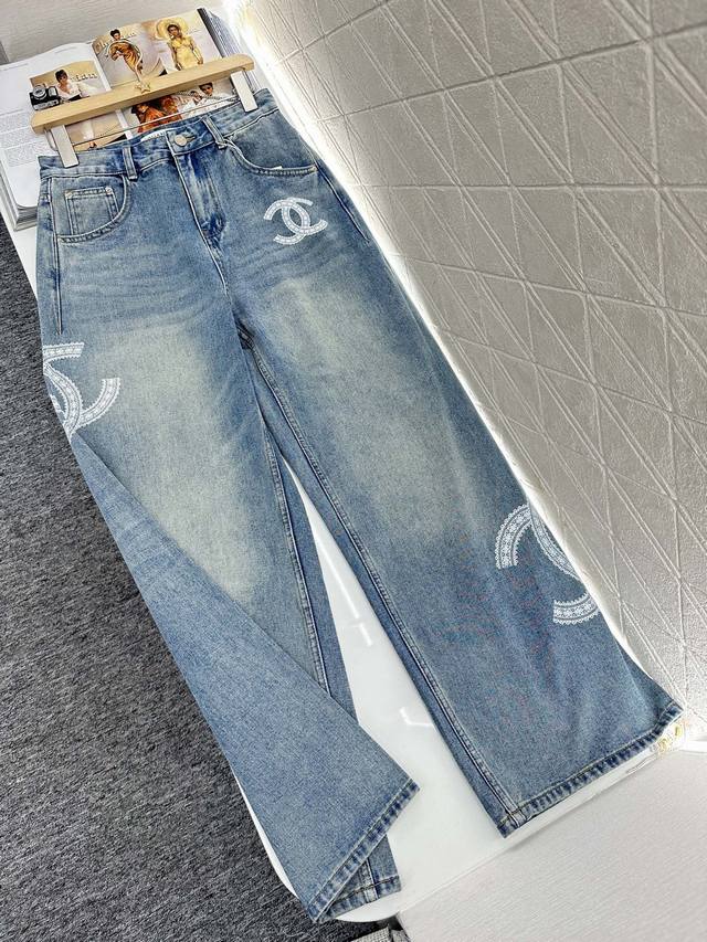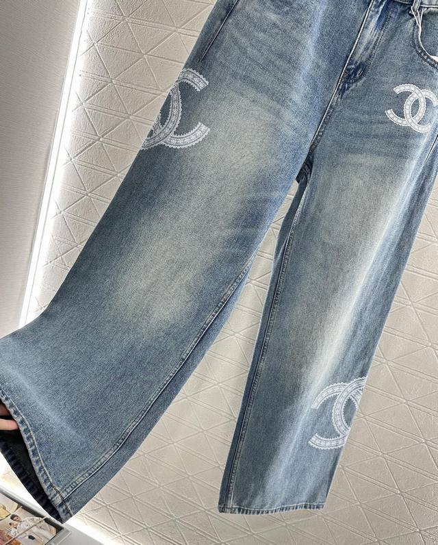 Chane*2025 New arrivals Lace embroidered denim trousers Customized Yb twill cott