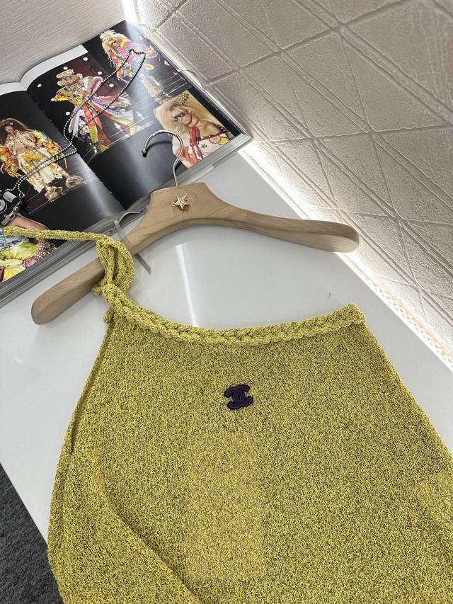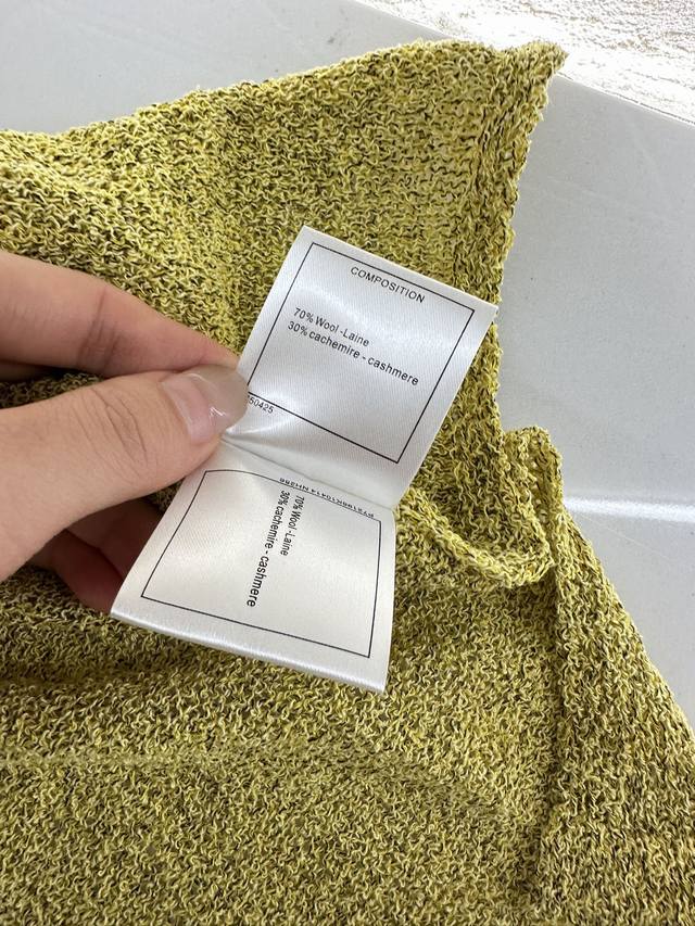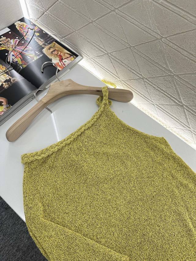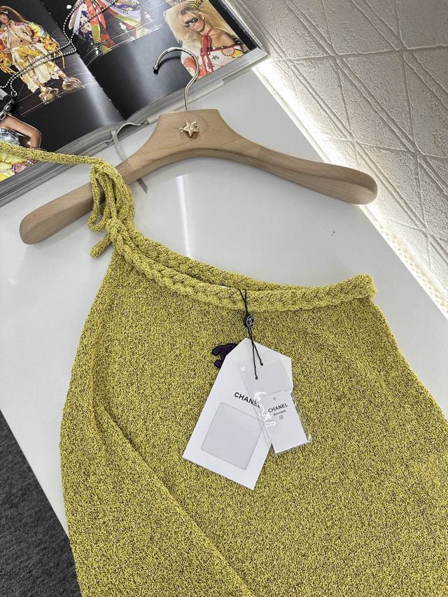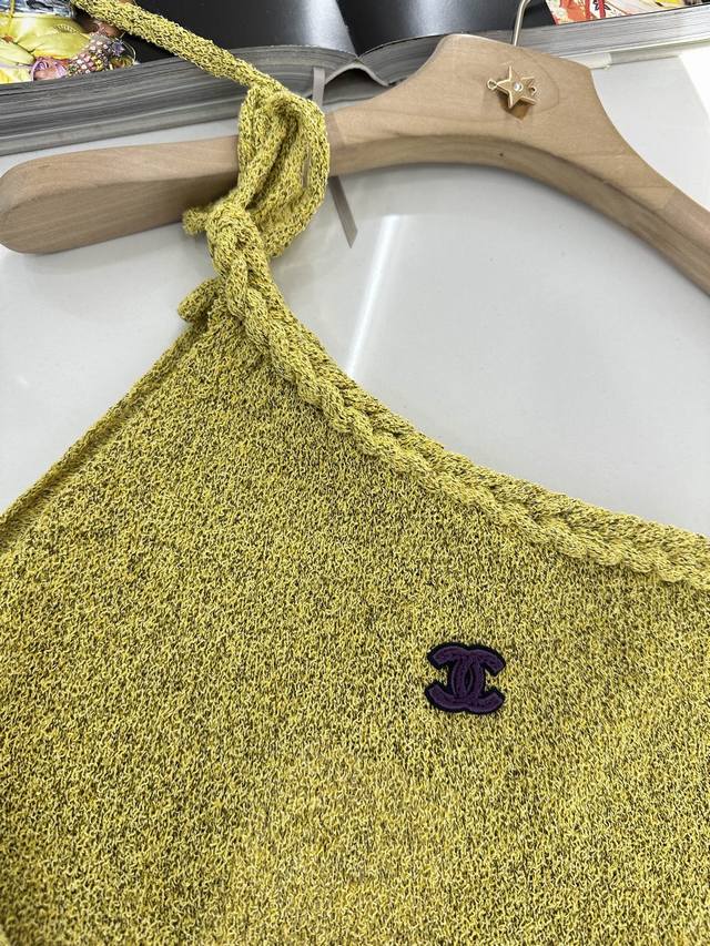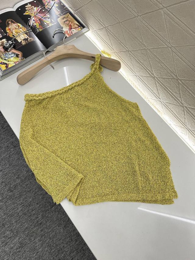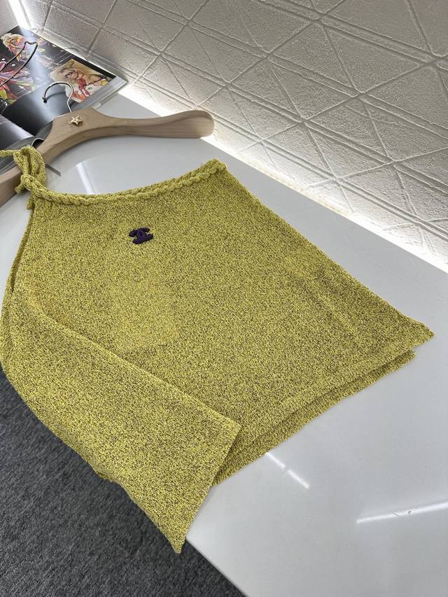 Customized Yb wool yarn woven for comfort, softness and stretchiness Off-shoulder knitted vest shape One-sided off-shoulder neckline fixed with twisted rope ties to enhance skin exposure and make you look thin and sexy The design is rich in layering and decorated with a three-dimensional double C logo on the chest to highlight the brand's high-end style The side slits of the garment are comfortable and elastic, adding a retro charm to the outfit. No deliberate decoration is required to highlight the foreign style of the outfit. Fashionable Hong Kong style Customized fabrics and accessories Look for the high version 36 38 40